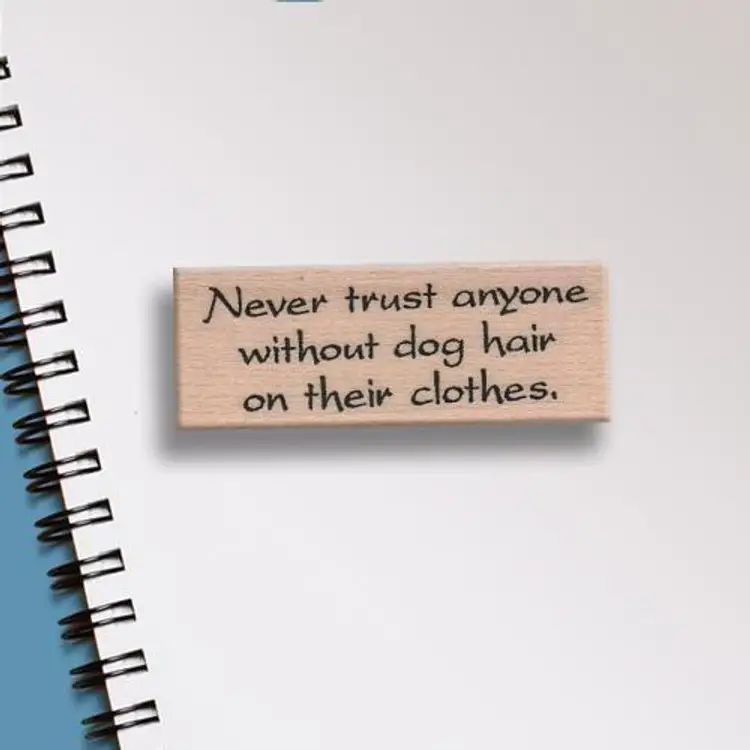 Never Trust Anyone Without Dog Hair On Their Clothes Rubber Stamp Size: 2-1/4 x 1 inches Wood Mounted Red Rubber Handmade