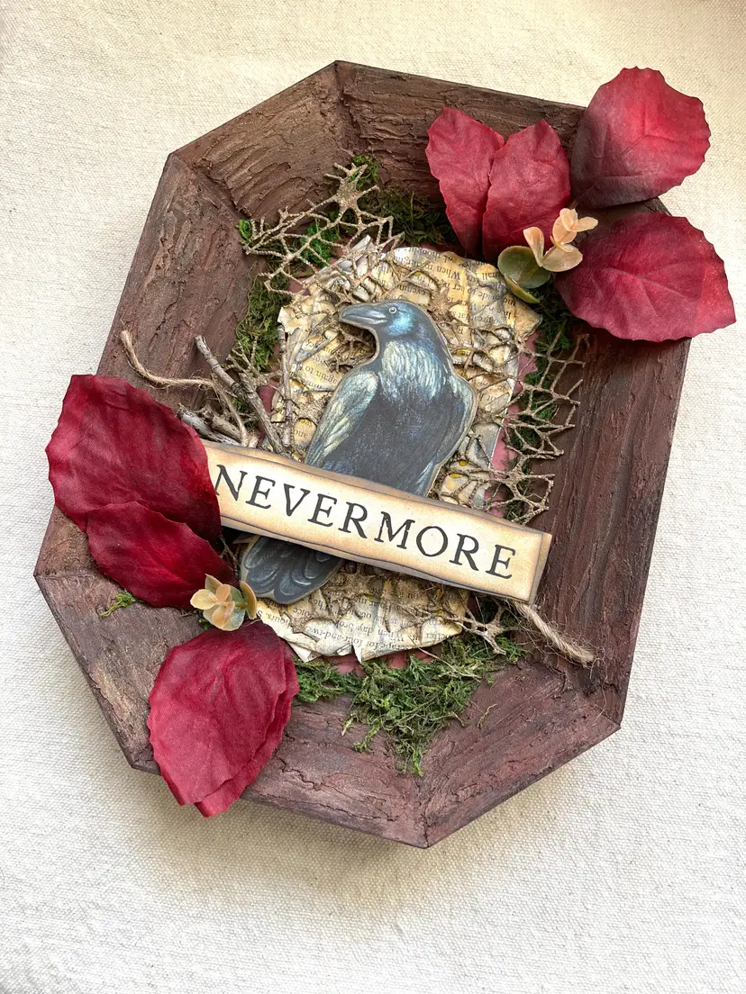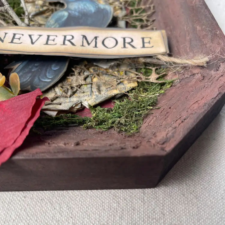 Made by me, this was inspired by Edgar Allan Poe’s "The Raven," this one-of-a-kind mixed media piece also captures the essence of the forest.