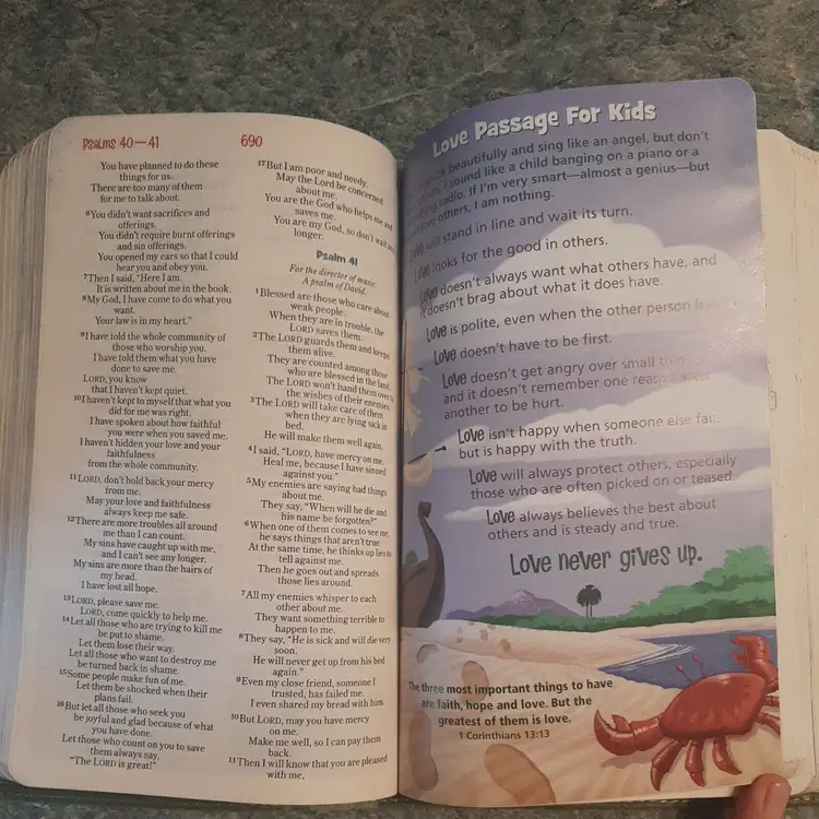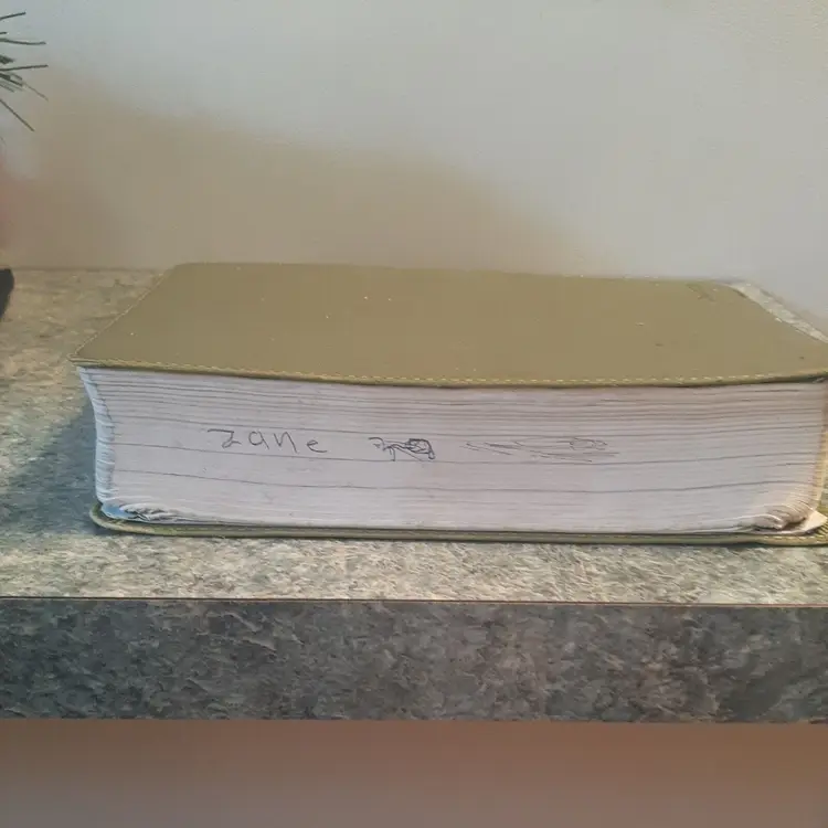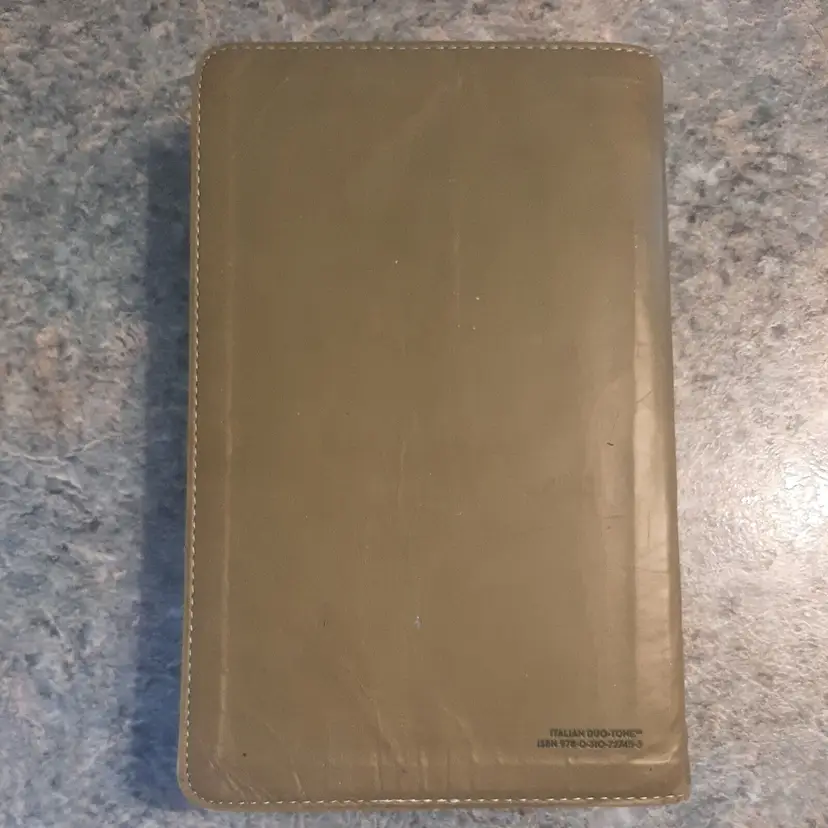 – Subjects: Religion & Beliefs – Custom Bundle: No – Format: Soft cover – Personalize: Yes – Item Width: 5 in – Number of Pages: 1565 – Item Length: 5 in – Item Height: 9 in – Subject: Religion & Spirituality – Topic: Bibles – Book Series: Historical – Vintage: No – Country/Region of Manufacture: United States – Ex Libris: No – Language: English – Publication Year: 2014 – Item Weight: 35 oz – Book Title: The Bible – Intended Audience: Ages 9-12, Young Adults – Author: Jesus Christ – Original Language: English – Personalization Instructions: name scratched out – Narrative Type: Nonfiction – Publisher: Zonderkidz – Inscribed: No – Signed: No – Genre: Religious & Spiritual – Personalized: Yes – Type: Short Stories