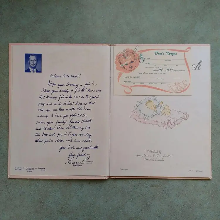 Introducing the NEW Baby's Own Biography Pink Book, a unisex keepsake perfect for recording your baby's special moments. The book features 16 record keeping pages including visitor's autographs, favourite toys, and health, height, teeth and weight. It also includes a family tree section for both mother and father and a Christening section. Published by Henry Davis & Co. in Toronto, this book is a product of Health & Accident Assurance Corporation with copyright protection. It is designed for baby girls with pink as the dominant color theme and includes a section for favourite prayers and gifts & messages. Cherish your baby's firsts and preserve memories with this one-of-a-kind book.