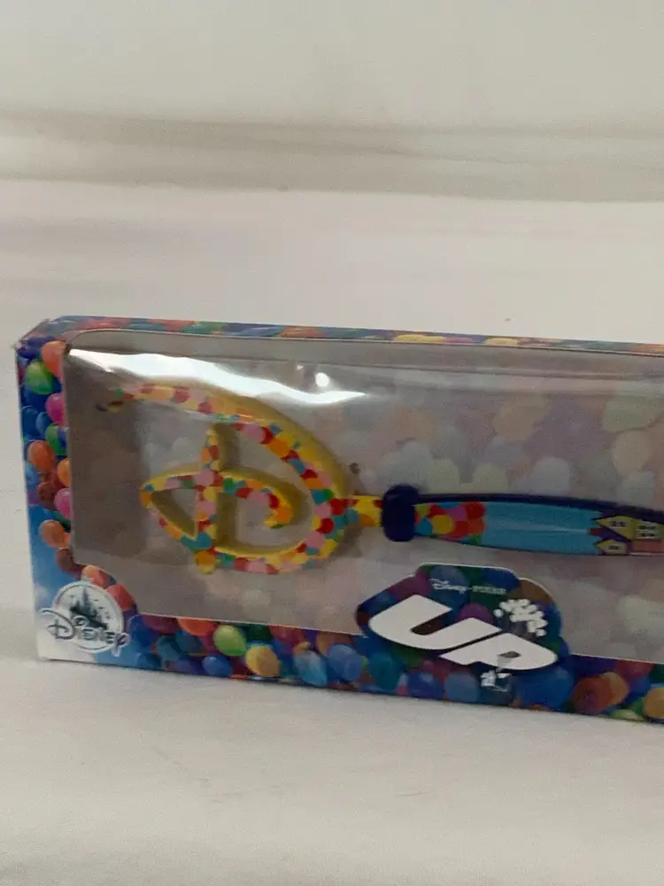 Collectible, sculpted key with ''D'' icon and Pixar Ball and Pixar Lamp teeth Vivid color Up-inspired graphic design Created especially for the Disney store and shopDisney.com Inspired by Disney and Pixar's Up Ages 3+ Plastic 6 5/8'' L New with box