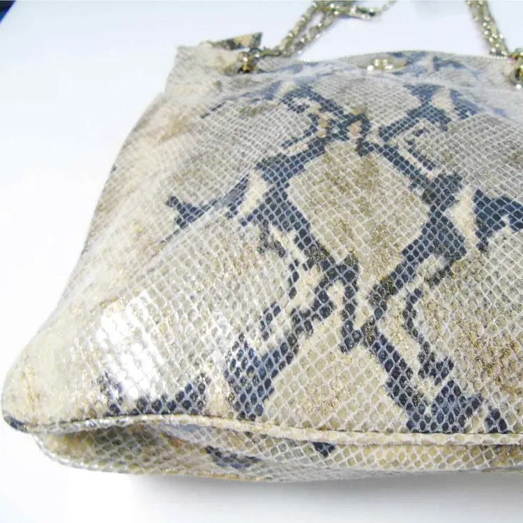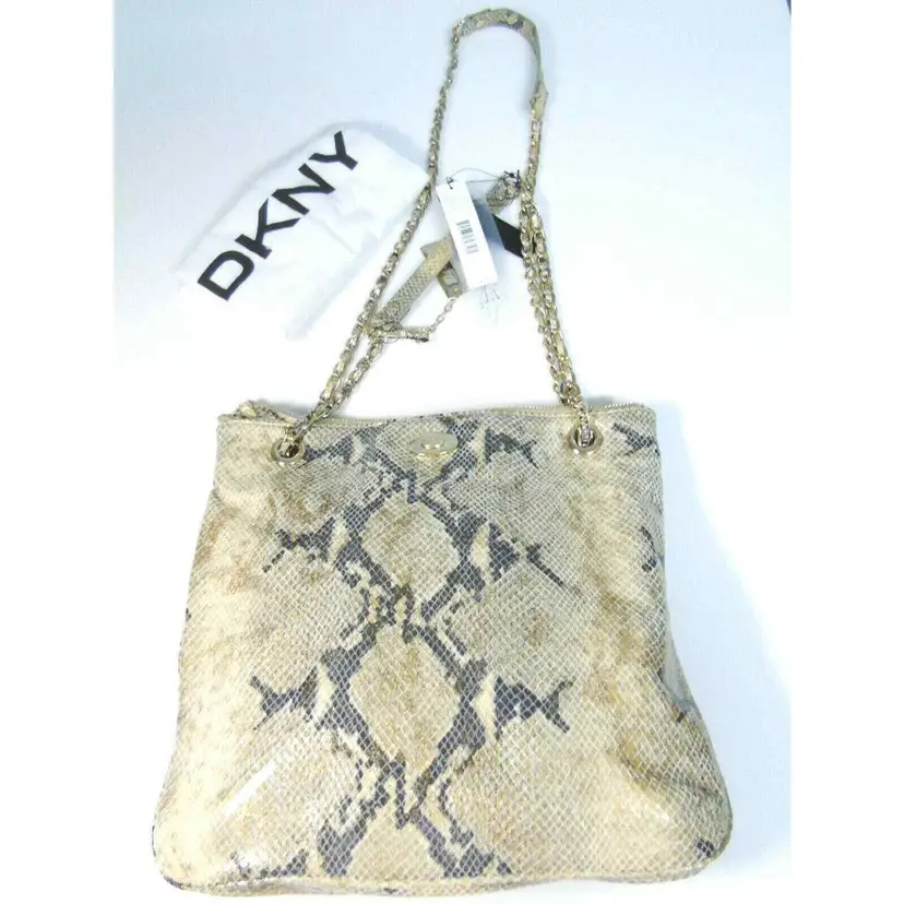 Brand: DKNY Color: Gold Closure: Zipper Vintage: Yes Shape: Rectangle Bag Height: 11.5" Hardware Color: Gold Lining Material: Satin Style Subtype: Messenger Size: Medium Exterior Color: Gold Theme: Snakeskin Model: Snakeskin Leather Handbag Occasion: Business, Formal, Wedding, Workwear, Travel, Casual, Party/Cocktail Accessories: Original Dust Bag Bag Depth: 2" Pattern: Python Snakeskin Department: Women Handle Drop: Adjustable Style: Crossbody Features: Adjustable Strap, Convertible Shade: Gold Brown Python Snakeskin Strap Drop: Adjusts Single To Double 10" to 18" Bag Width: 12 in Exterior Material: Leather Bag Length: 12" Accents: Gold DKNY Key Fob Handle/Strap Color: Multicolor Handle Style: Double Handles