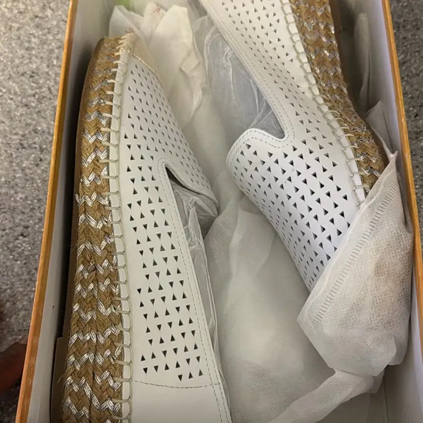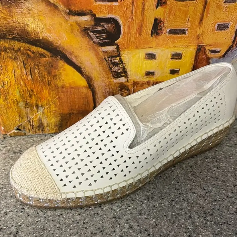 New $80 Bella Vita Channing slip-on perforated espadrille in white leather. 7.5