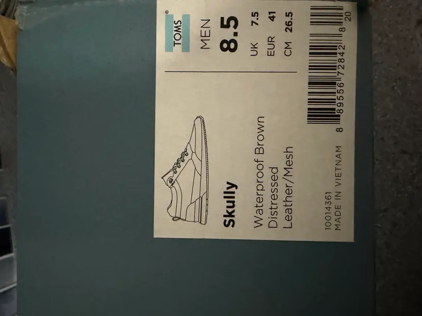 New $90 TOMS mens Skully Hiking Shoe, Brown, 8.5 US