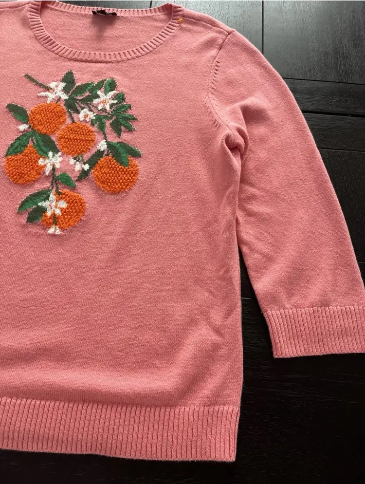 New without tags, NEW $99 TALBOTS Bold Oranges Cotton-Blend Crewneck Pullover Sweater Size Medium Three-Quarter Sleeve Hits At Hip Crew Neck Pullover Straight hem Imported Material: 60% Cotton, 20% Rayon, 20% Nylon Care: Machine Wash Cold; Only Non-Chlorine Bleach When Needed; Reshape, Lay Flat To Dry; Cool Iron If Needed