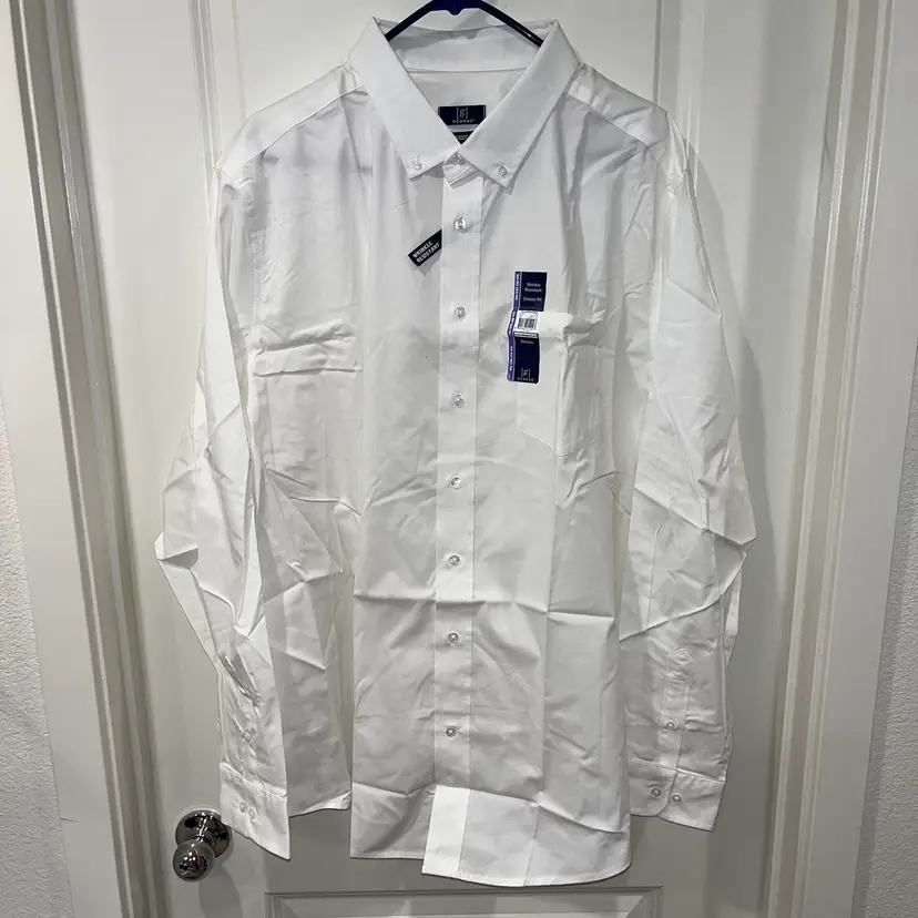 New George Button Down white Shirt Men's XXL Long Sleeve Poplin Cotton Blend