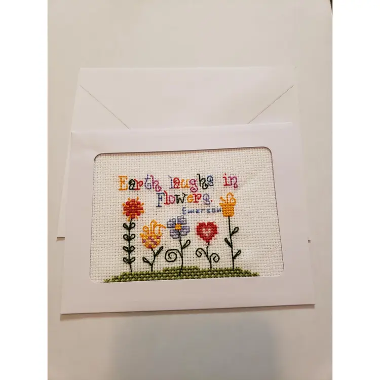 Seller stitched card using pattern from 80+ Kind Thoughts produced by Kooler Design Studio. See photo for cards measurements.