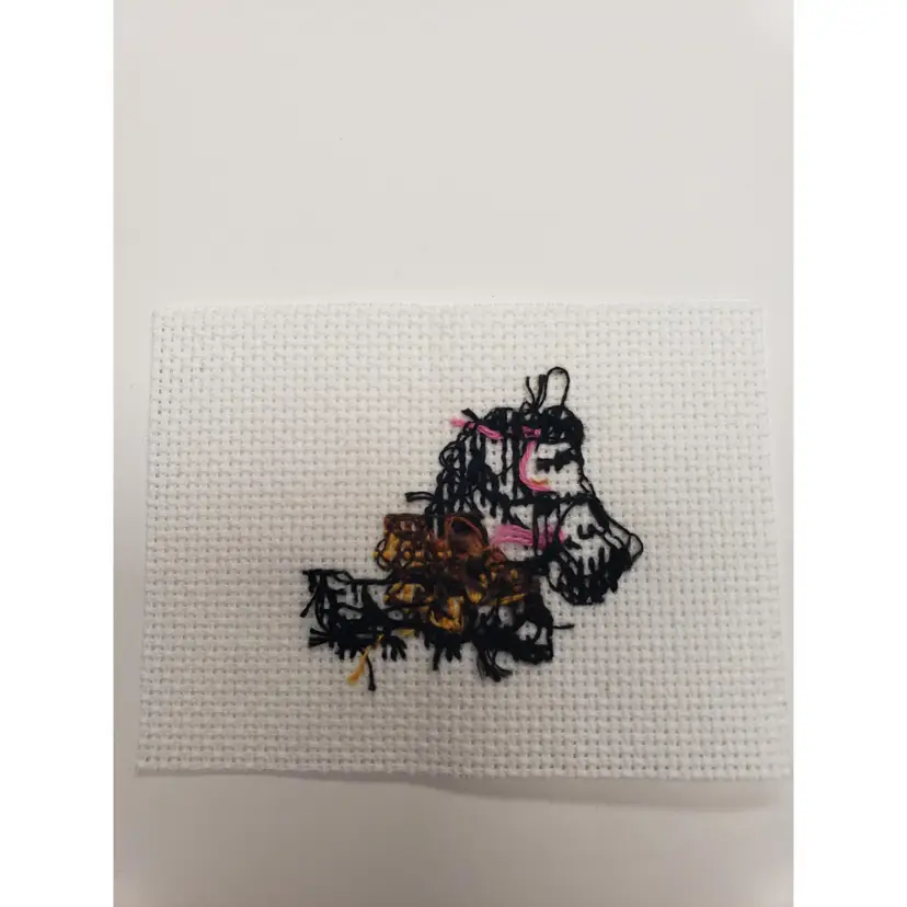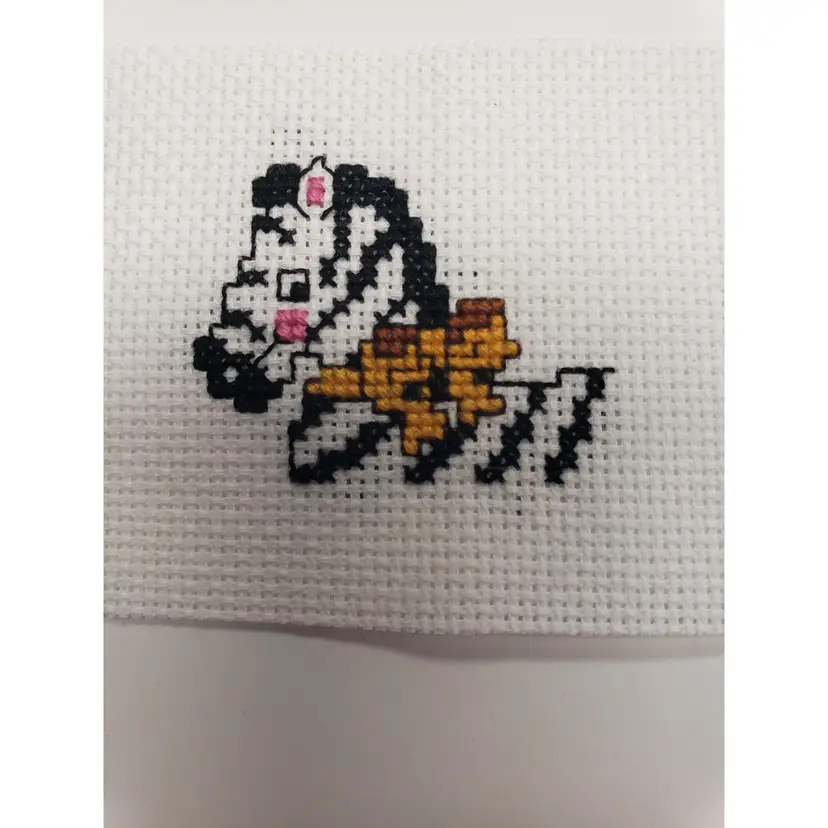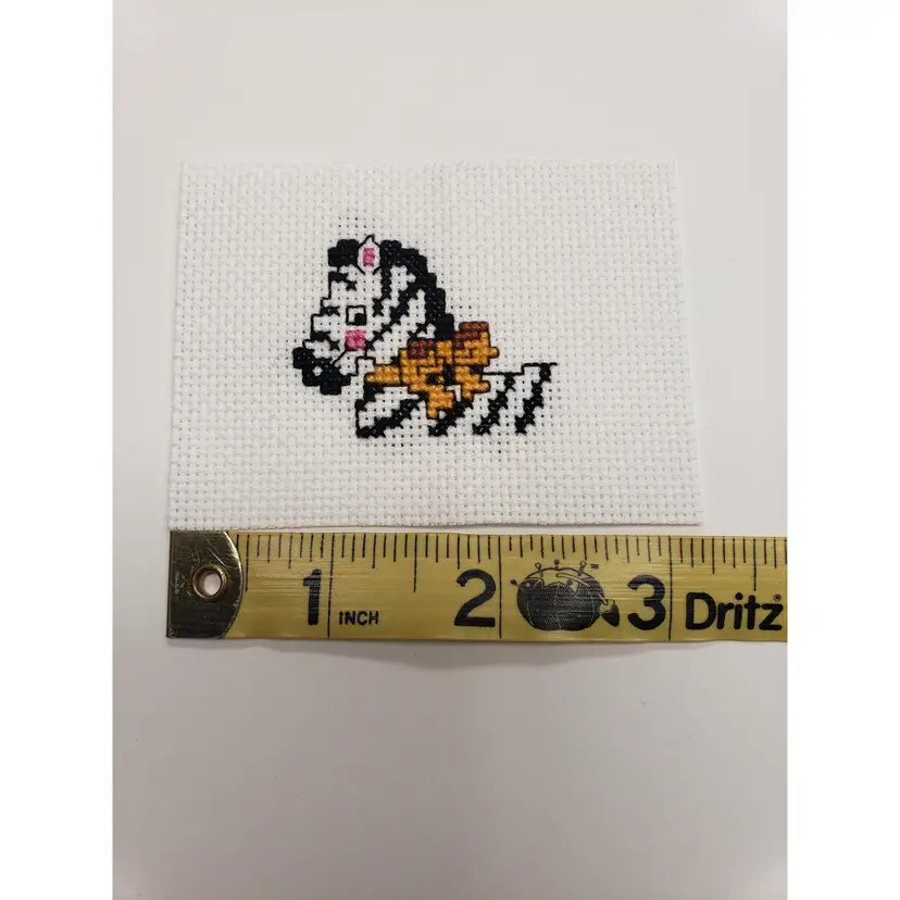 Seller cross-stitched zebra with gold bow. Please see photos for measurements.