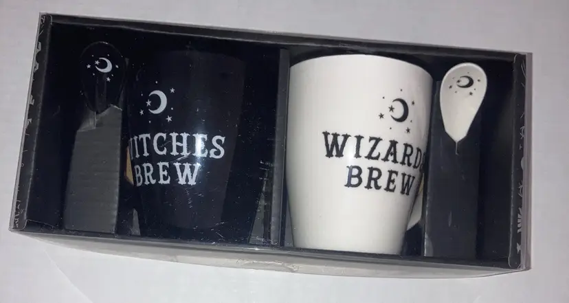 New In Box! “Witches Brew And Wizards Brew” Mugs And Spoons Approximately 4” Tall New to District? Enter code Michel42 into your wallet prior to your first purchase and save $5 off of $10 or more purchase! Thank you for taking a look at my items! Happy Shopping!