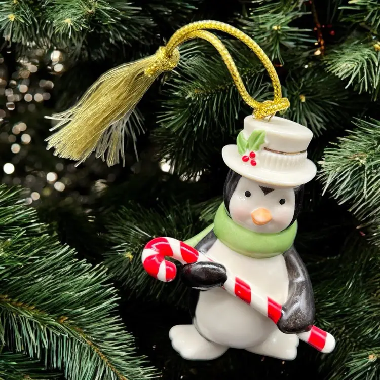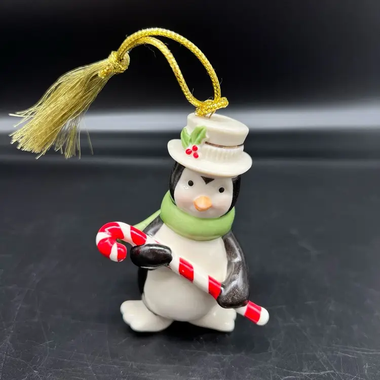 Add some festive charm to your Christmas tree with this adorable Lenox Penguin with Candy Cane Porcelain Ornament. Crafted from high-quality ceramic material using pottery techniques, this ornament is a must-have for collectors and holiday enthusiasts alike. With a cute and quirky animal shape, this ornament is perfect for Christmas occasions and features a hanging mechanism for easy display.
