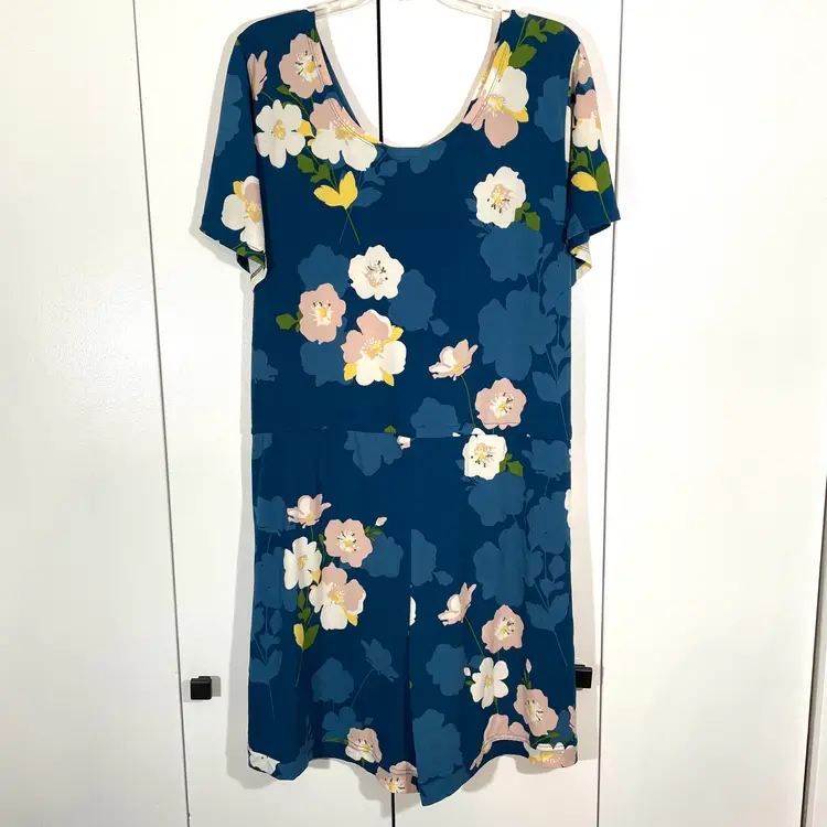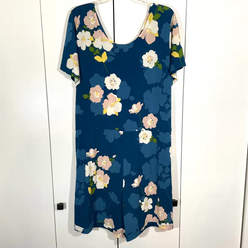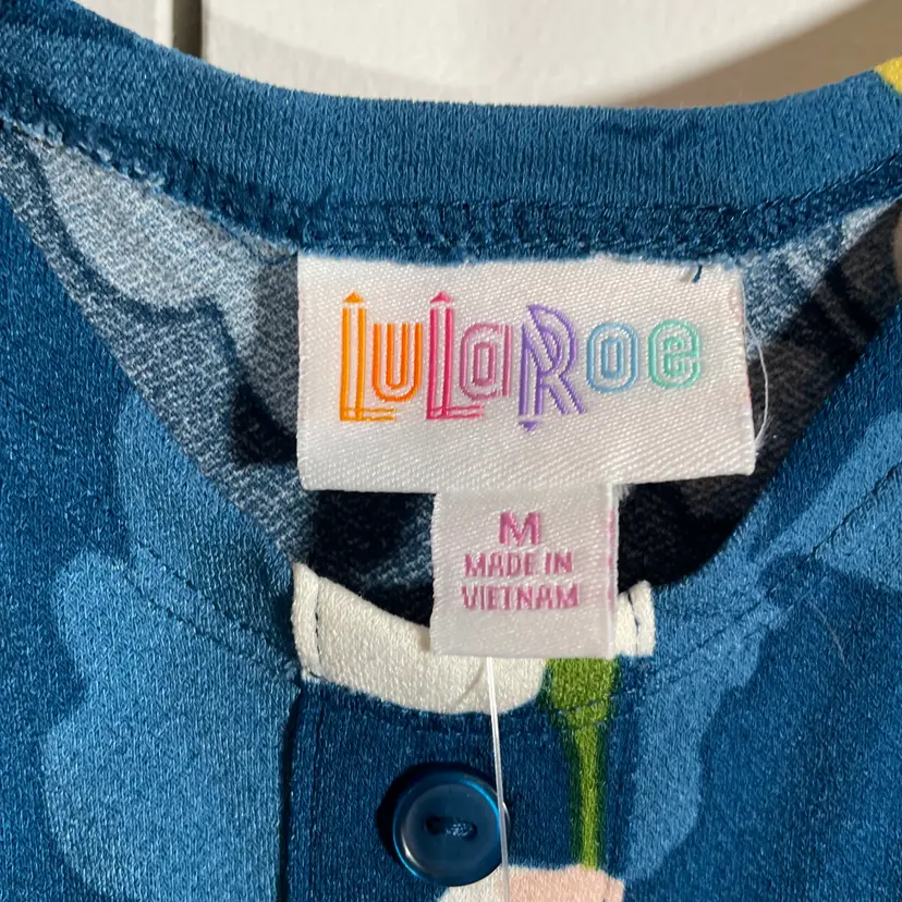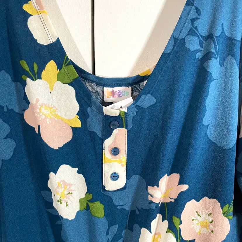 NEW LuLaRoe Xanthe Romper Condition: New with tags. No stains, rips, or holes. Please see and zoom in on photos for more details. Color: Blue with floral print Features: Oh, so comfy. Bell-sleeved romper with a modified v-neck, faux button placket at the center front, functional drawstrings at the waist, and side seam pockets. Polyester, spandex blend. Great for travel, or the beach. Size: Medium Measurements taken with item laid flat