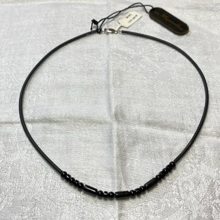 Add a touch of elegance and simplicity to your jewelry collection with this stunning Luperla necklace. The necklace features beautiful black round and cylinder beads, strung on a wire cord tube, and finished with a 925 marked lobster closure. The 16-inch necklaces bohemian and beach theme will make you stand out in any occasion. This necklace is perfect for both casual and formal events. Whether you're going to the beach, attending a party, or simply want to add a touch of nature to your outfit, this necklace is a must-have. It's a great gift for yourself or your loved ones. Get yours today!