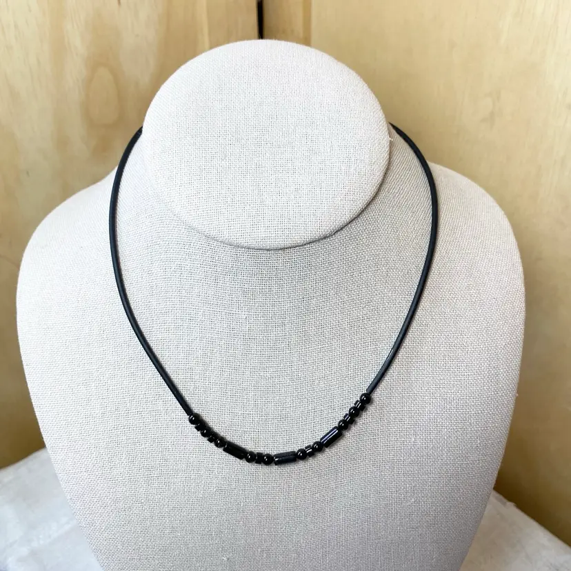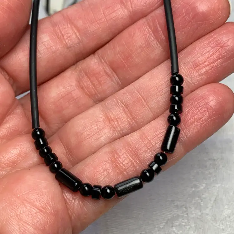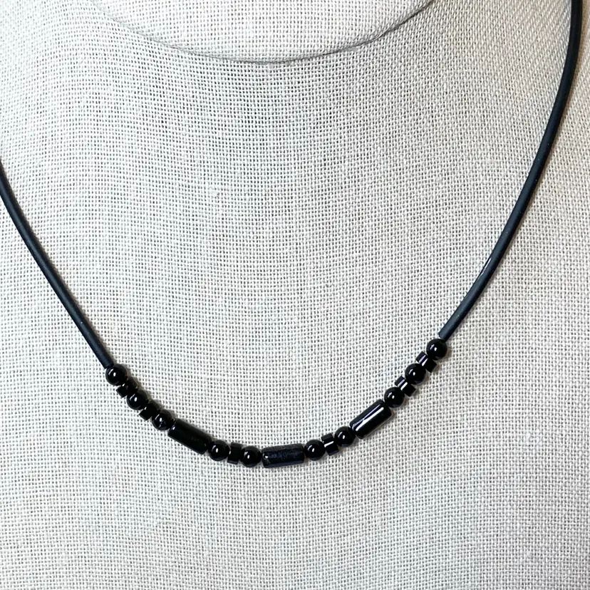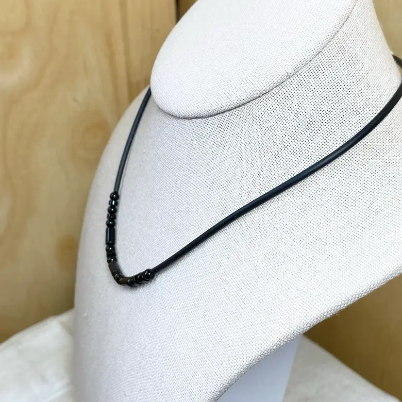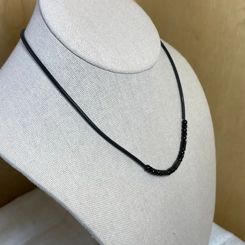 New Luperla Dainty Simple Black Round/Disk & Cylinder Bead Cord Tube Necklace. SMOKE FREE/PET FREE HOME Approximate measurements: Length- 16"