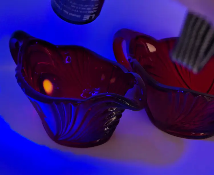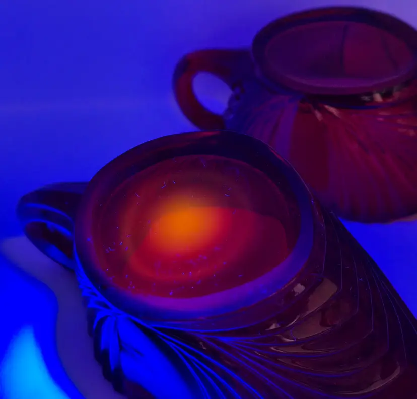 This vintage sugar and creamer set from New Martinsville's Queen Anne line is a stunning addition to any collection. The ruby red color and elegant glass production style make it a standout piece. The set includes a creamer and sugar bowl, both made of high-quality glass and adorned with the iconic Queen Anne design. The set is perfect for use at a tea party or for display in a glass cabinet. Its antique status and production year of 1930 add to its charm and value. This sugar and creamer set is a must-have for any collector of fine glassware.