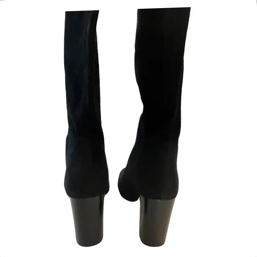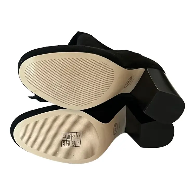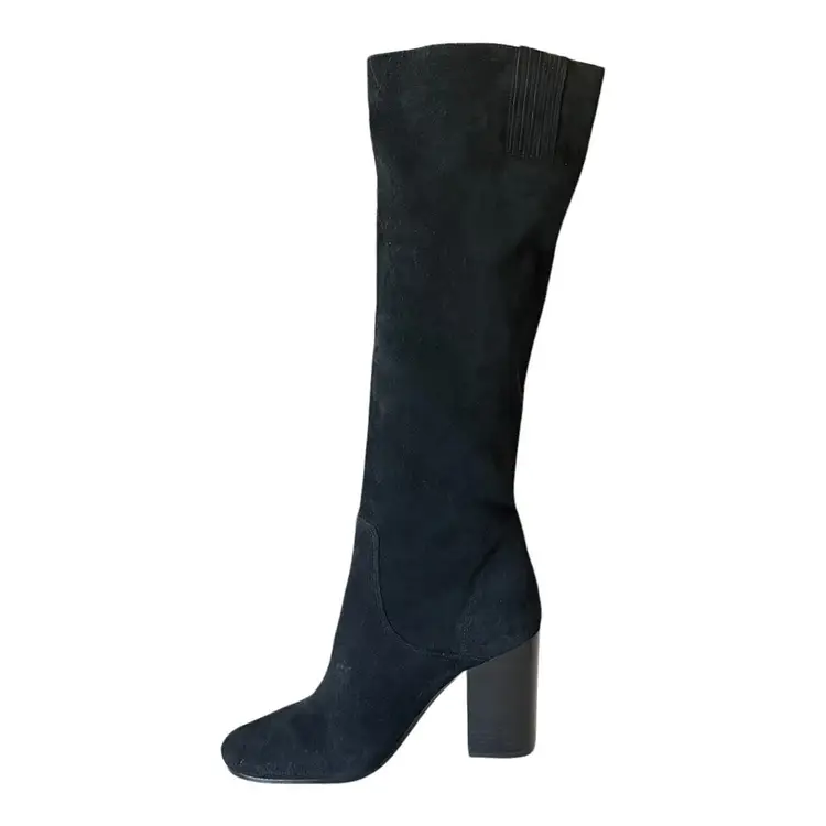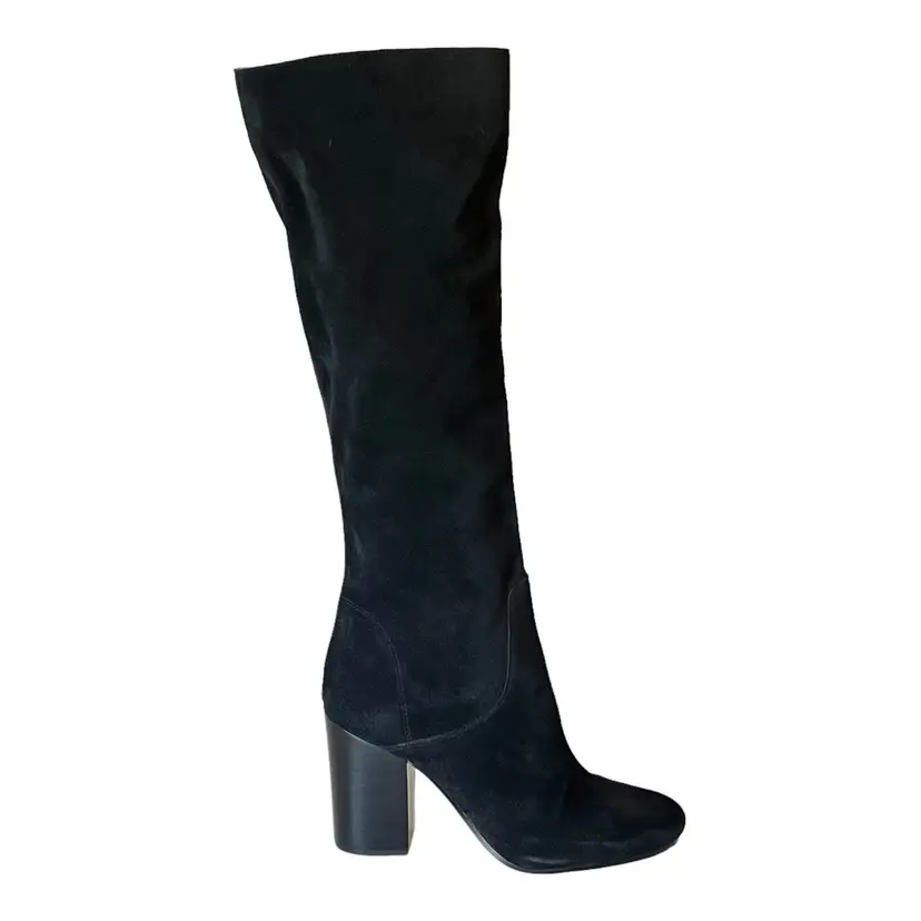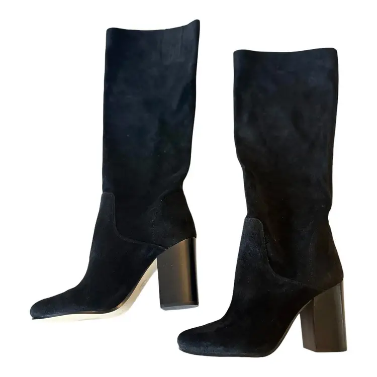 Brand: Michael Kors Color: Black Heel Style: Block Theme: Classic, Biker, Rock, Going Out Model: Michael Kors Leigh Boot Upper Material: Suede Leather Heel Height: High (3-3.9 in) Pattern: Solid Fabric Type: Suede Leather UK Shoe Size: 7.5 Style: Pull On US Shoe Size: 9.5 Occasion: Casual Shoe Shaft Style: Knee High EU Shoe Size: 40.5 Vintage: No Accents: Logo Product Line: Michael Kors Boot Closure: Pull On Outsole Material: Rubber Lining Material: Polyester Department: Women Season: Fall, Spring, Winter, Summer Shoe Width: M Calf Width: Medium UPC: Does Not Apply Insole Material: Synthetic Toe Shape: Round Toe Features: Breathable, Comfort, Lightweight Type: Boot