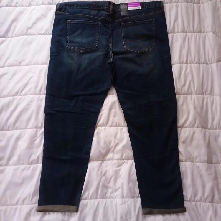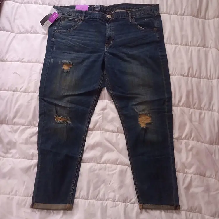 Look effortlessly stylish in these NEW Mossimo Blue Skinny Boyfriend Distressed Premium Denim Size 18 Jeans. Made with a 99% Cotton and 1% Lycra Spandex blend, these jeans offer stretch and comfort while maintaining their shape. The low rise and relaxed fit add a touch of casual cool to any outfit, while the 5-pocket design and coin pocket provide ample storage space. Featuring a rinse wash and distressed accents, these jeans are perfect for any modern fashionista. With a button and zip closure and belt loops, these jeans are versatile and easy to wear. Ideal for all seasons, these jeans are a must-have for any wardrobe.