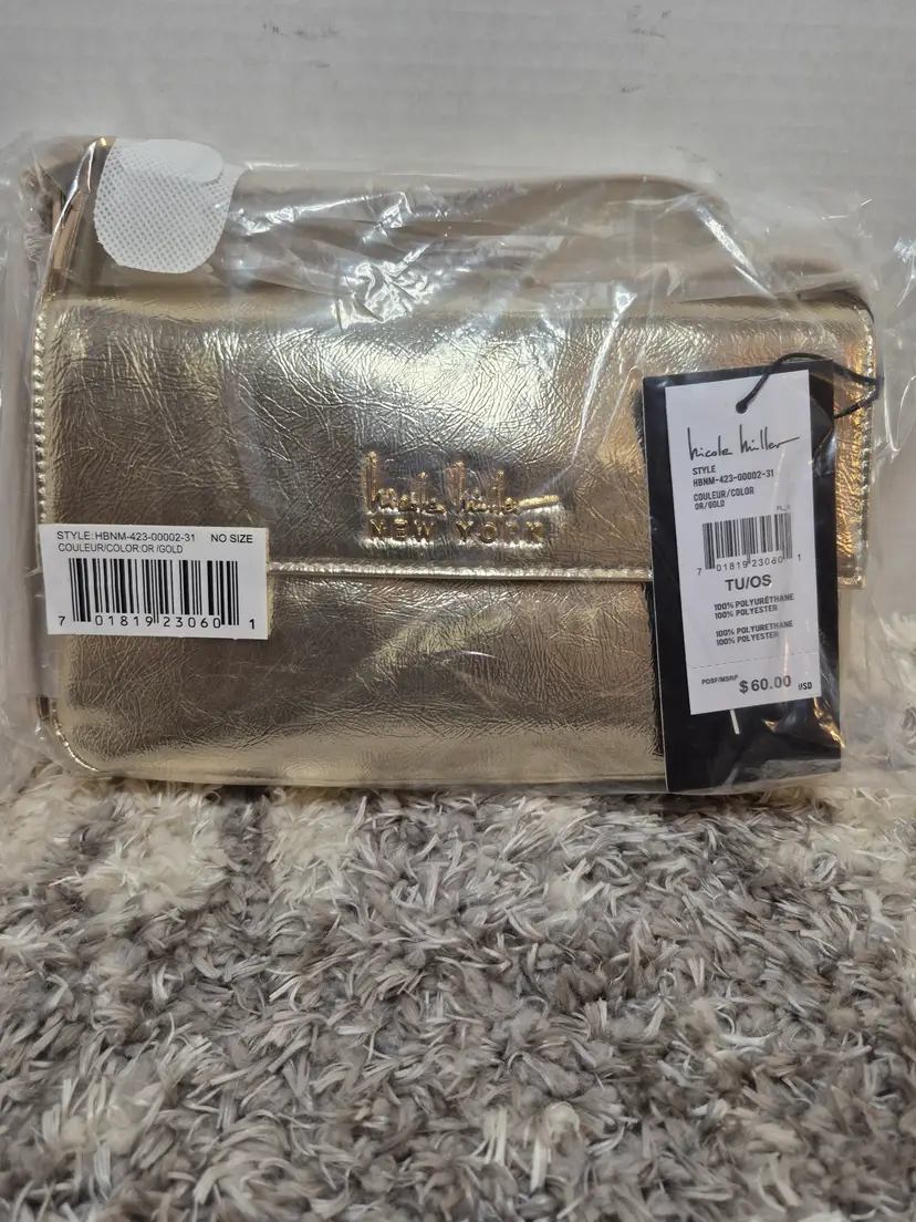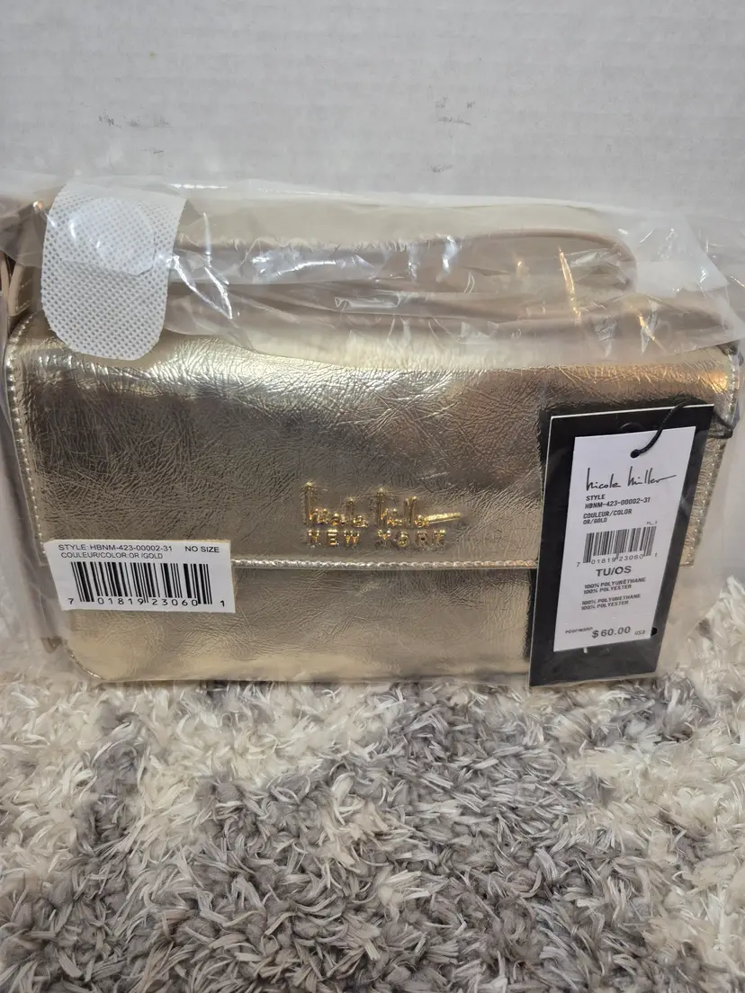 Brand New Nicole Miller New York Gold Purse