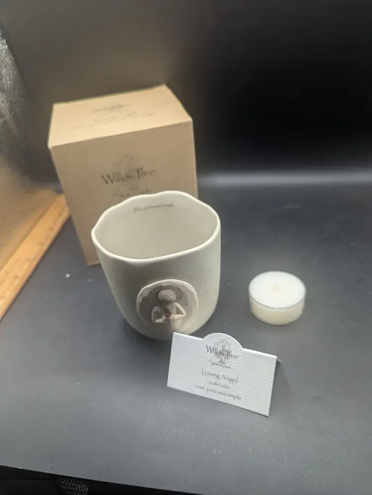 This is a lovely New Old Stock Willow Tree 2008 Candle Holder Tea Light Loving Angel. No chips or cracks. Please see all pictures for condition and measurements.