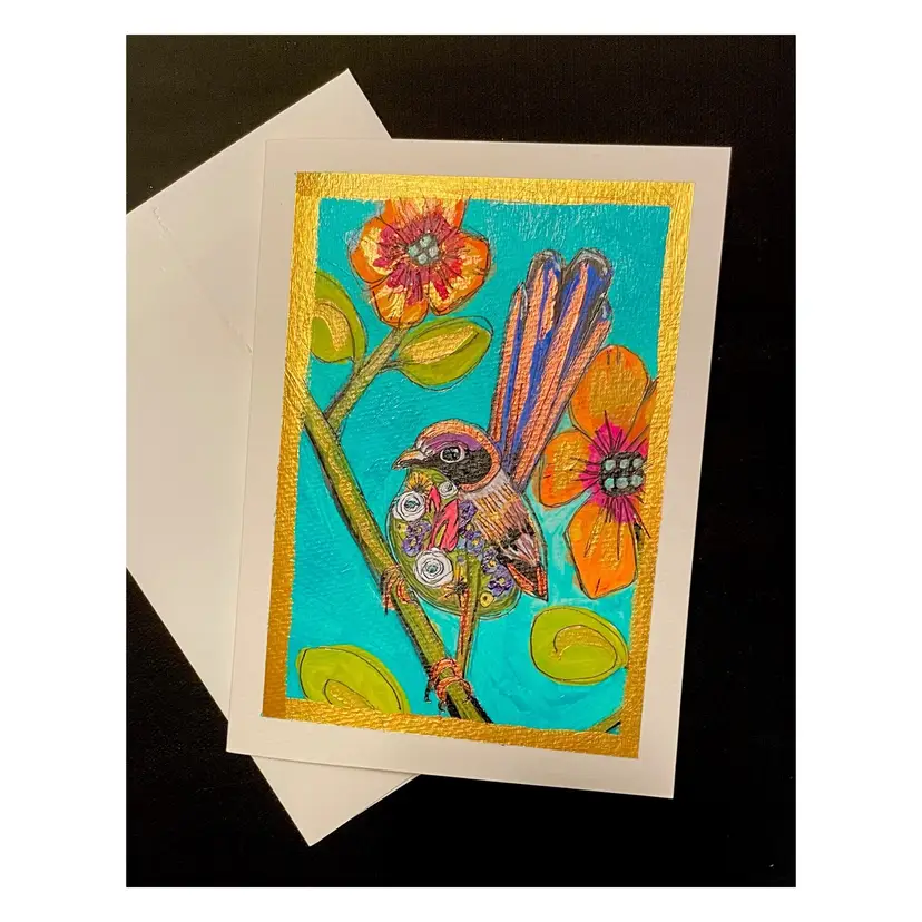 New Original Hand Painted Card With Envelope Blank Inside On 5”x7” Watercolor Card Bird Art