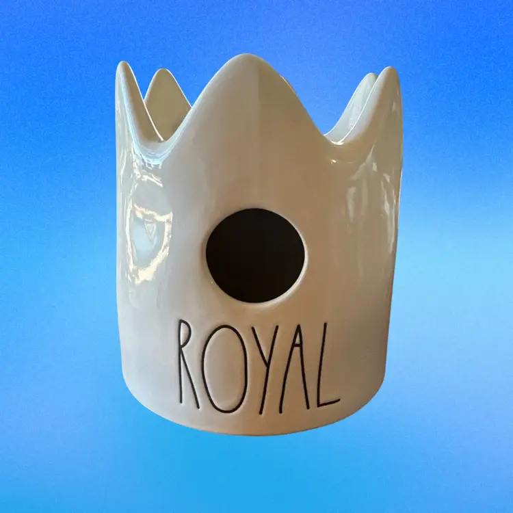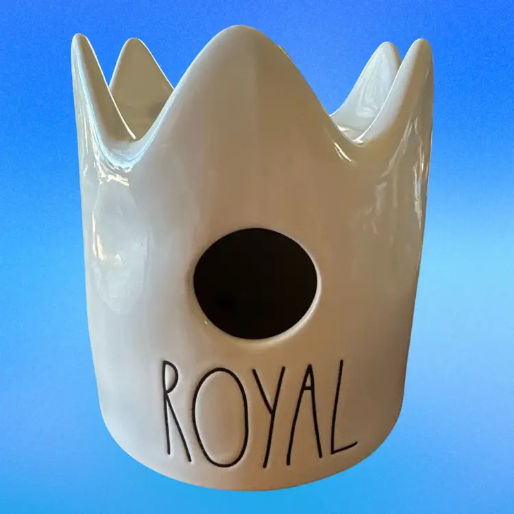 The (NEW) Rae Dunn Royal Crown Birdhouse Ceramic is a white ceramic birdhouse featuring a fun and curious design inspired by the Rae Dunn brand. Measuring 6 inches in height and 5.5 inches in width, this birdhouse is perfect for everyday use and can be easily cleaned with a damp cloth or warm water.