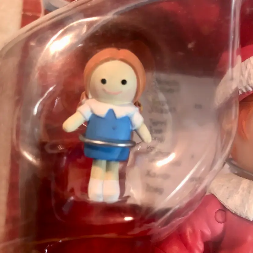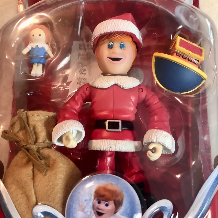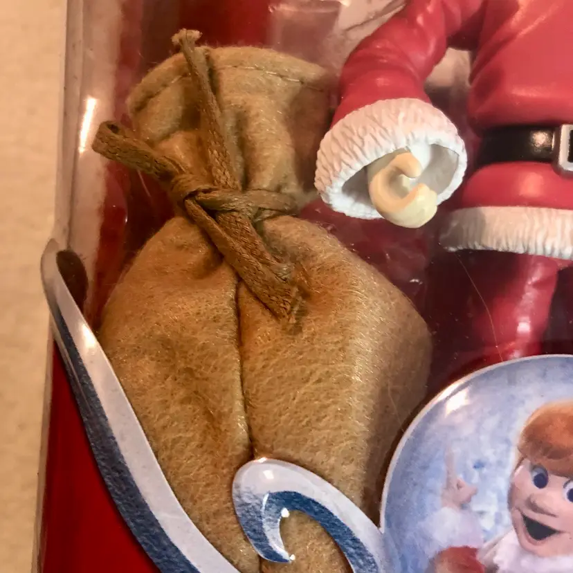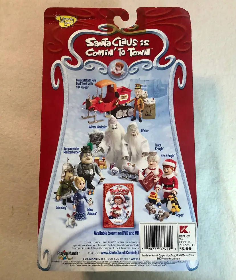 This product is a vintage 2004 Memory Lane Santa Claus Is Comin' To Town Kris Kringle action figure with a toy bag. The multicolor figure is made of mixed materials including plastic and fabric, and is inspired by the classic TV show and movie. This licensed reproduction from the Santa Claus Is Comin' To Town franchise features the beloved character Kris Kringle in an animator doll design, perfect for fans of cartoon and TV character themes. Made in China, this action figure is a nostalgic addition to any toy collection.