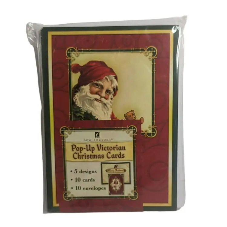 New Seasons Pop-Up Victorian Christmas Cards Set 10 Cards/Envelopes, 5 Designs. Condition is new. High-quality prints with intricate designs that add a nostalgic touch to your holiday greetings. Cards measure 5 inches x 7 inches. (FC07)202307176