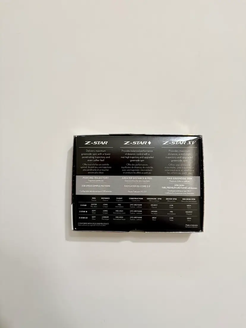 The Z-STAR Diamond is a unique, tour validated ball designed for players who demand the long game distance of the Z STAR XV but with significantly more mid to long iron spin. This is the preferred ball for many tour professionals looking for better holding power on the greens with their irons.