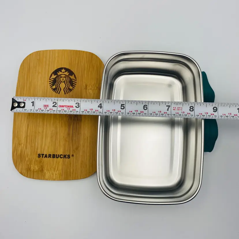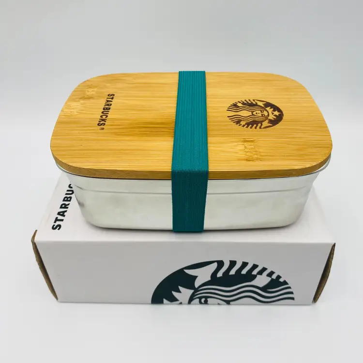 For sale is a New Starbucks Lunch Box Picnic Lunch Box Container with Bamboo Lid