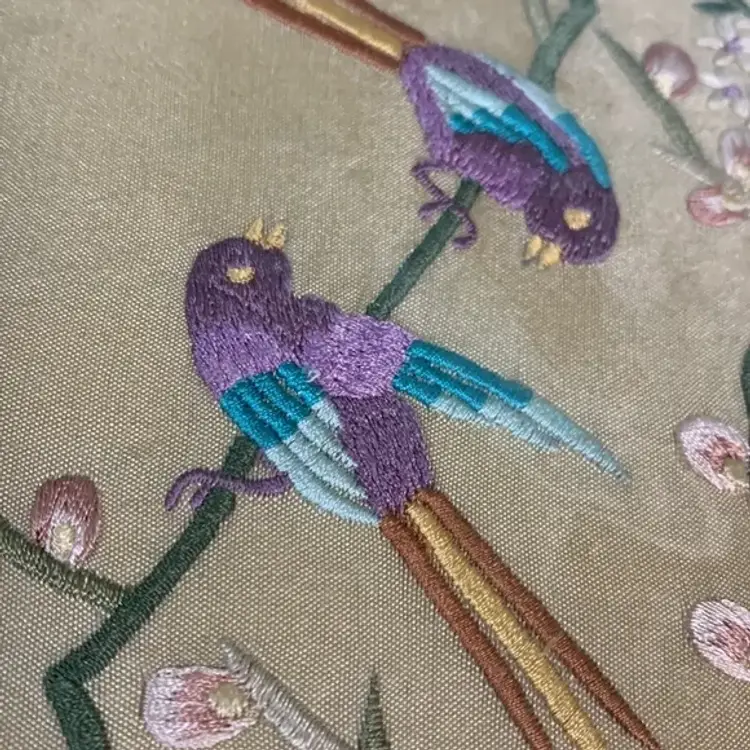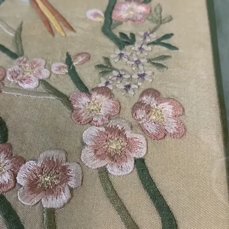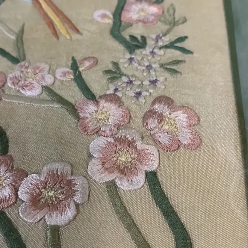 New Vintage Avian Floral Embroidered Needlework Art with Mat