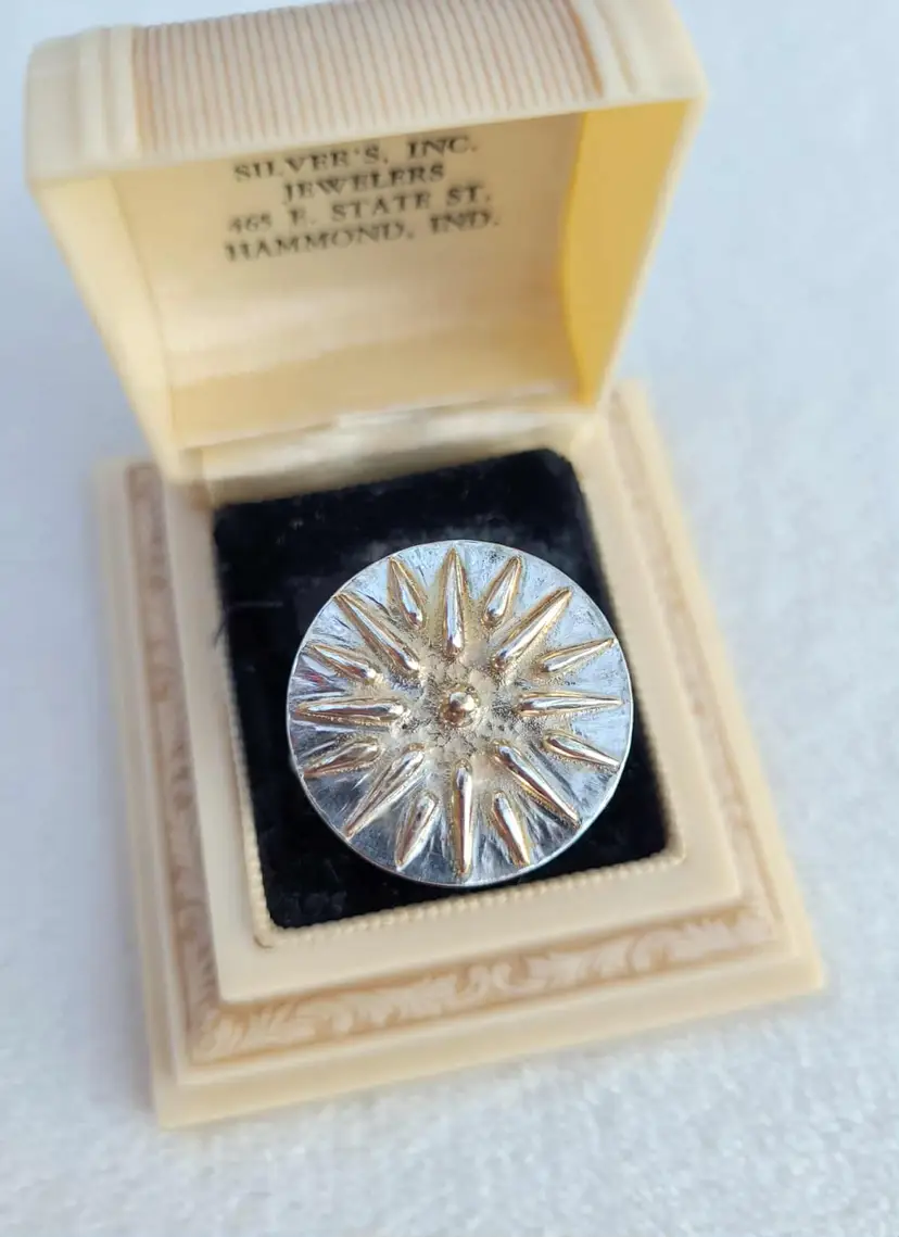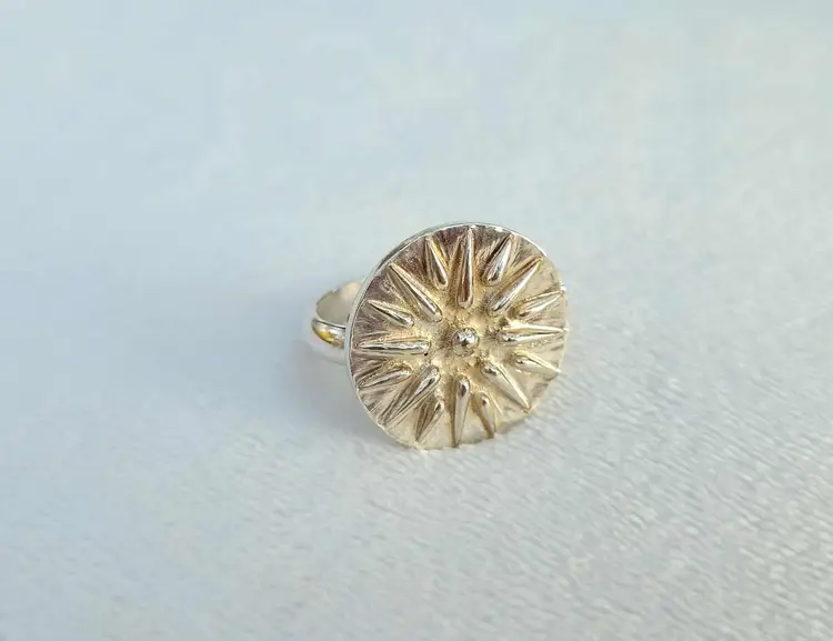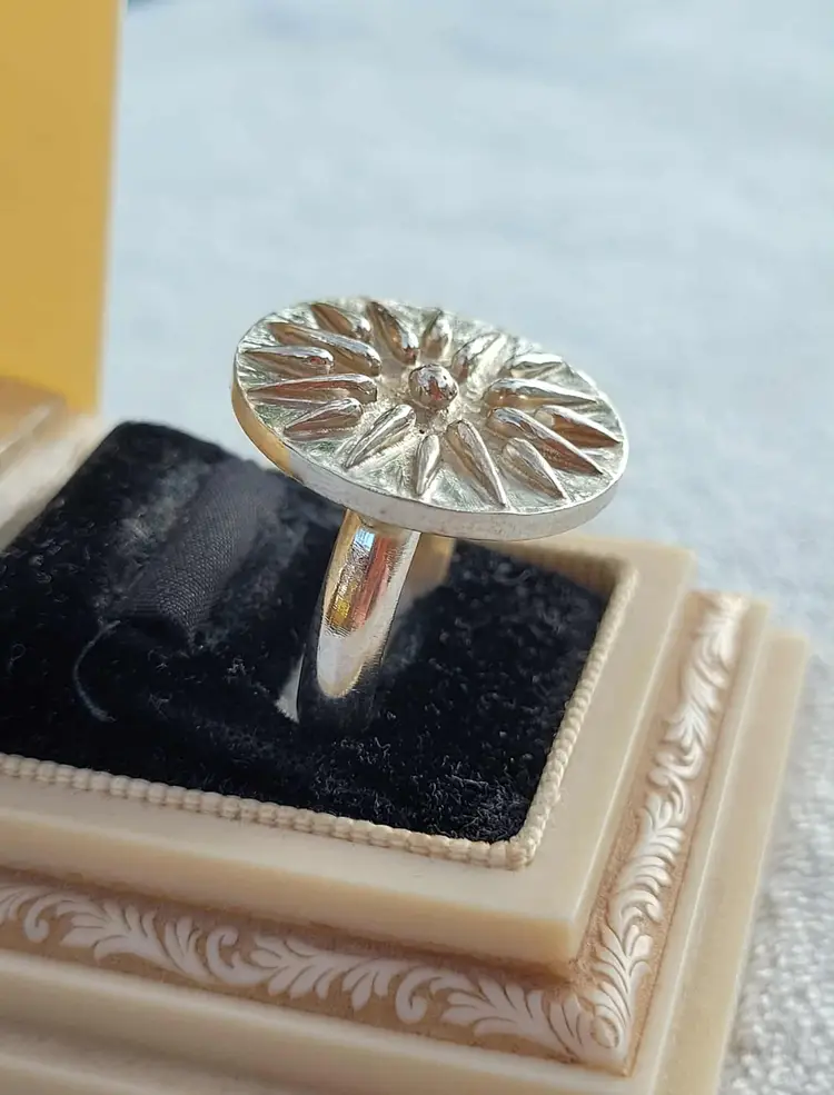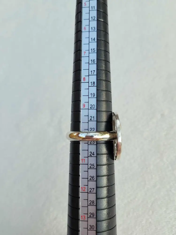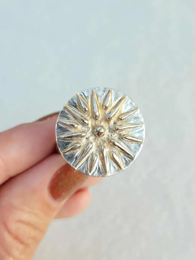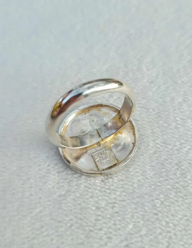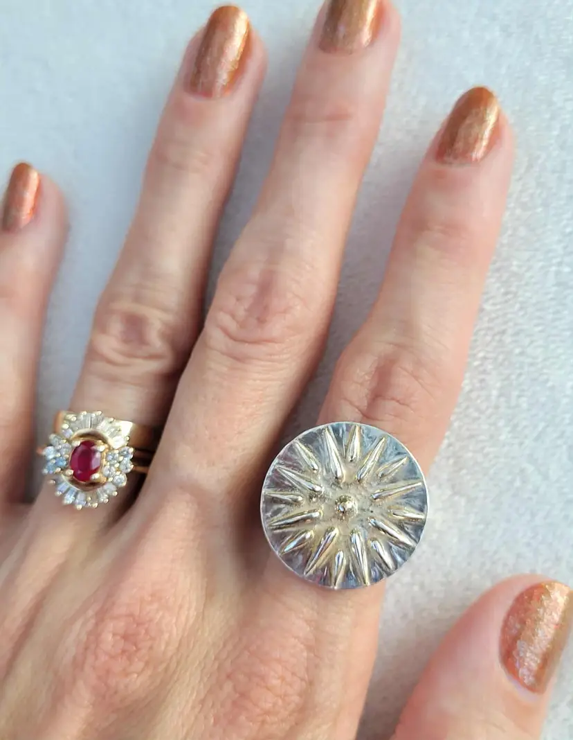 Half vintage, half new! Beautiful mod statement ring handmade by our very own artisan, Matthew Normansell, made by repurposing a broken vintage 1980s/90s Greek Zolotas pendant from an estate. Please see pictures for details and measurements, does not include my ring box.