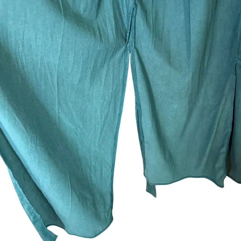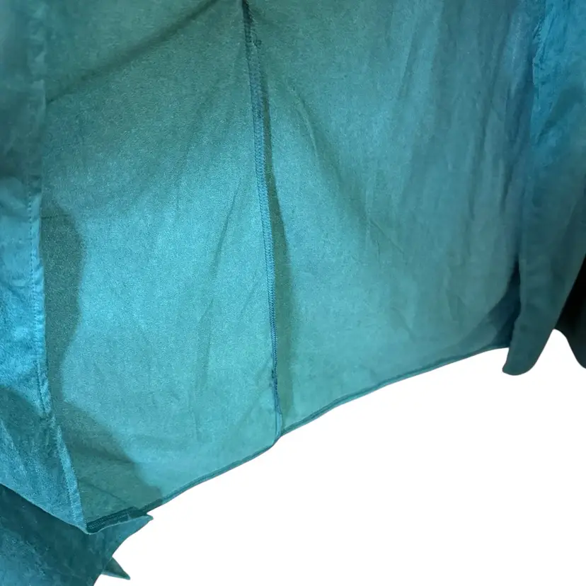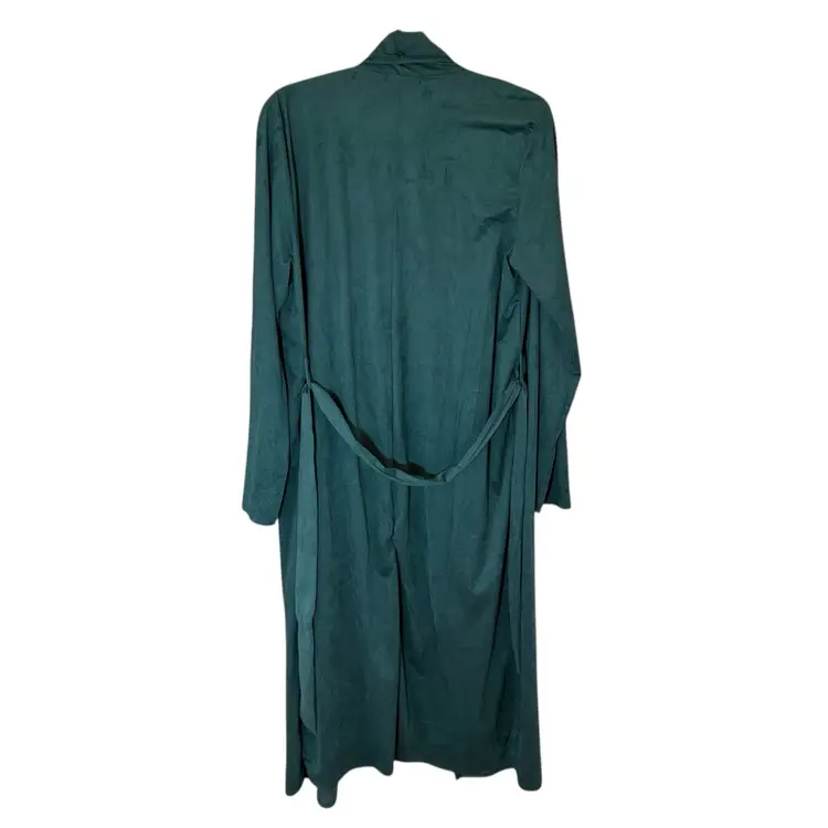 The New Whisper Boutique Long Line Duster Cardigan Kimono Cover Up Robe in green XL is a stylish and versatile piece perfect for a variety of occasions. This long sleeve cardigan features a relaxed fit, open waterfall neckline, and belted waist for a flattering silhouette. Made from a blend of polyester and spandex, the lightweight and super soft faux suede material ensures comfort and breathability. The cardigan is accented with side slits and a bohemian, hippie-inspired theme, making it ideal for festivals, vacations, loungewear, and more. Made in the United States by Haute Cactus for Whisper Boutique, this cardigan is a must-have addition to any wardrobe.