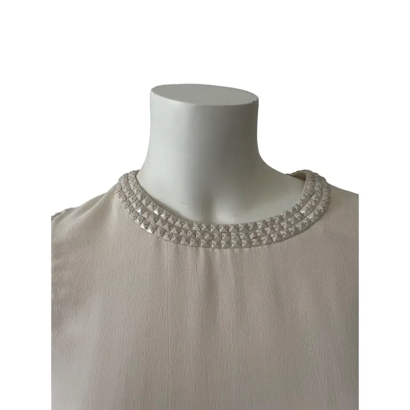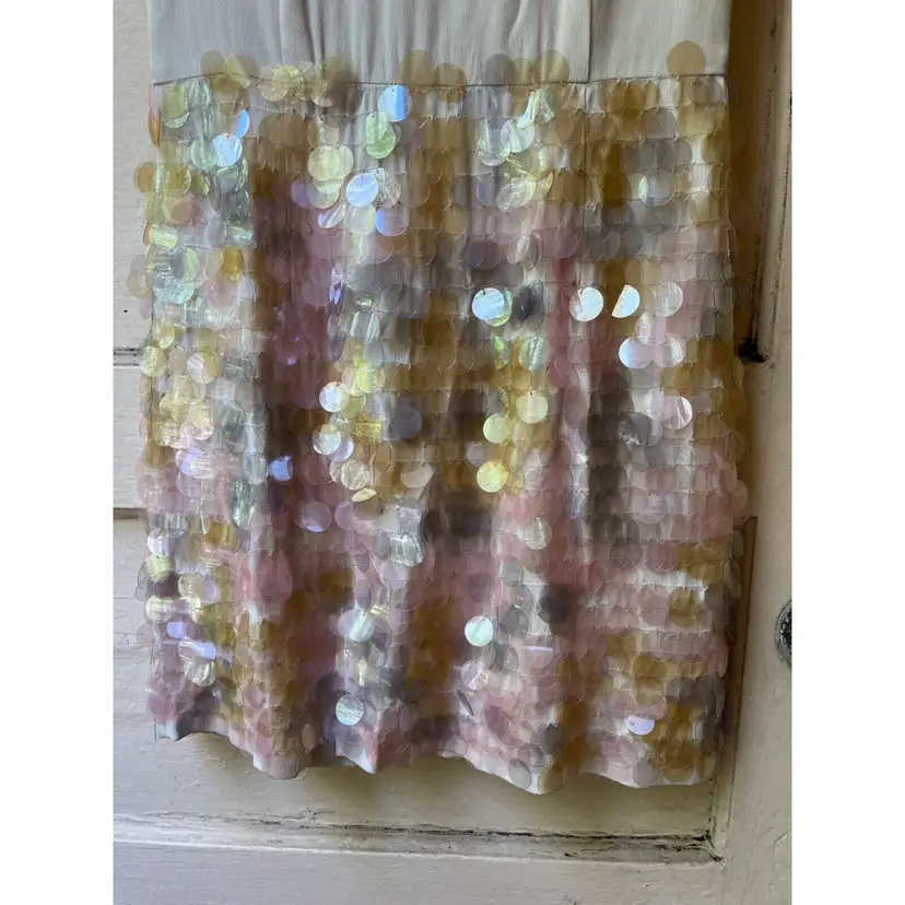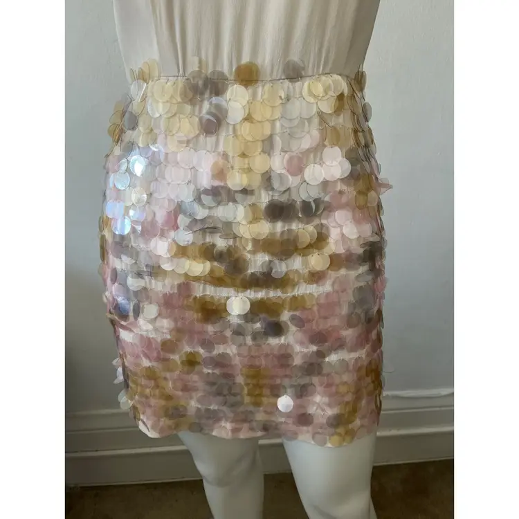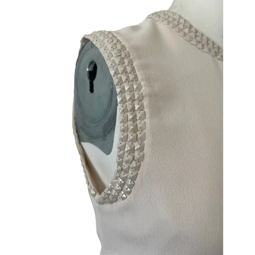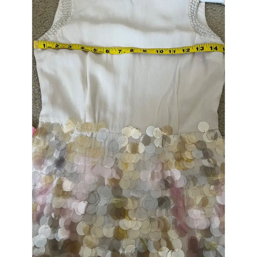 Pattern: Geometric Sleeve Length: Sleeveless Closure: Zip Neckline: Scoop Neck Size: 2 Color: Pink and Cream Material: Viscose Rayon Polyester Accents: Beaded Dress Length: Short Brand: French Connection Size Type: Regular Department: Women Style: Mini