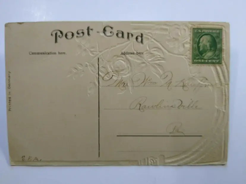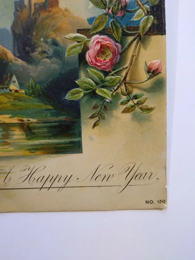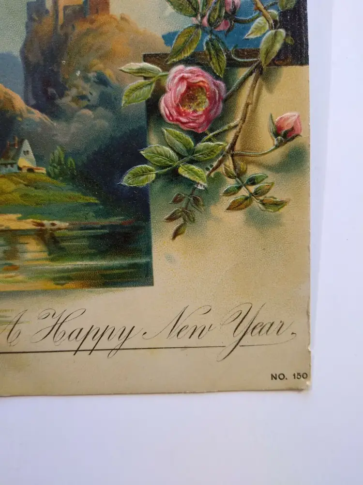 Antique vintage original embossed New Years postcard. Printed in Germany series150. Has creases, spotting, and age wear. Posted with stamp. Stock #ny24.