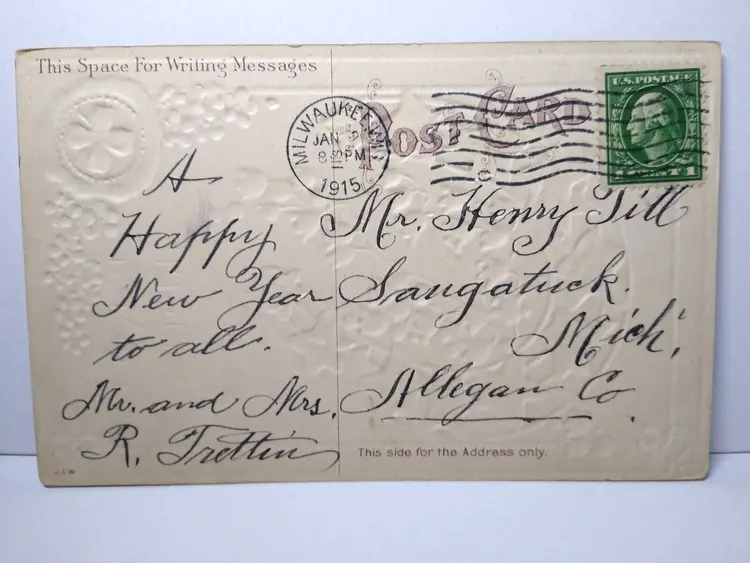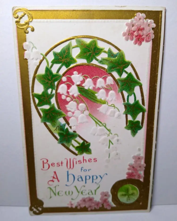 Features: Divided Back Custom Bundle: No Personalize: No Time Period Manufactured: 1900-1919 Subject: Horseshoe Number of Items in Set: 1 Occasion: New Year Era: Divided Back (1907-1915) Size: Standard (5.5 x 3.5 in) Country/Region of Manufacture: Unknown Material: Paper Brand/Publisher: JLW Year Manufactured: 1915 Postage Condition: Posted Artist: Unknown Original/Licensed Reprint: Original Signed By: HBG Signed: No Unit of Sale: Single Unit Theme: Art, Flowers & Plants, Greetings, Happy New Year Type: Printed (Lithograph)