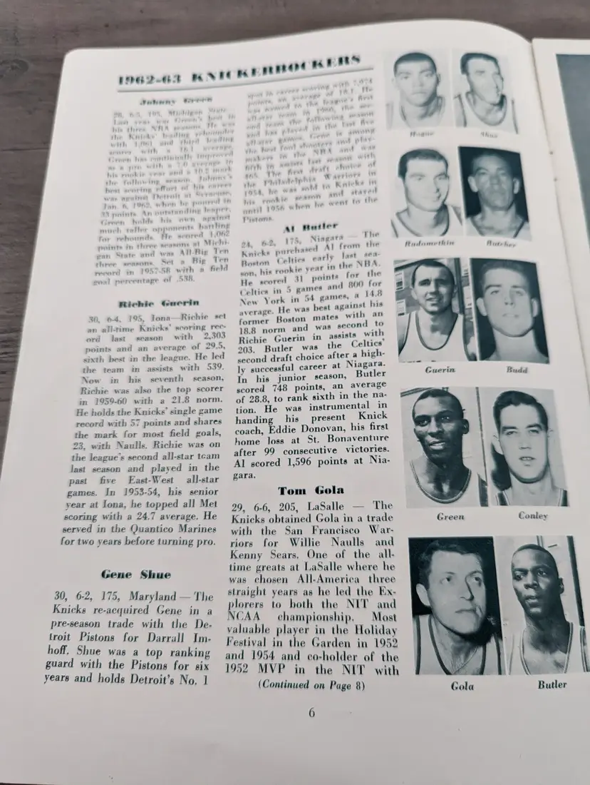 This listing is for an original Vintage lot of 1963 New York Knickerbockers programs. The blue is vs Boston Celtics from January 22, 1963 & the Red book is the New York Knickerbockers vs Cincinnati Royals NBA Program from January 25, 1963. They are in great condition for their age. Rare awesome collectibles for any NBA or Knicks fan.