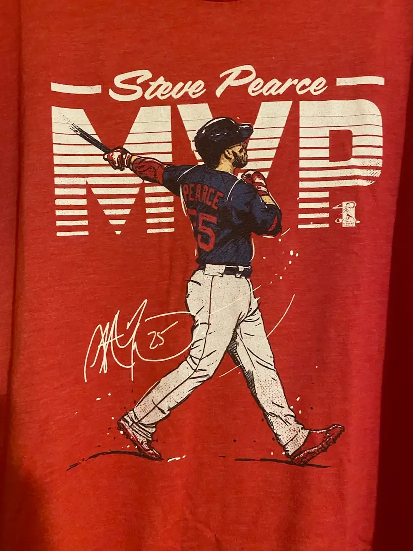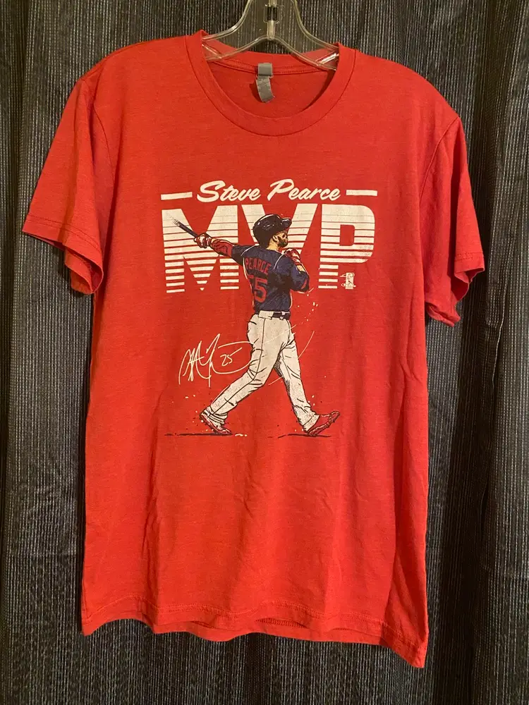 You are purchasing one Size Medium Red MLB Steve Pearce MVP #25 Short Sleeve T-Shirt by Next Level Apparel. This T-Shirt is in good condition with no holes or stains.