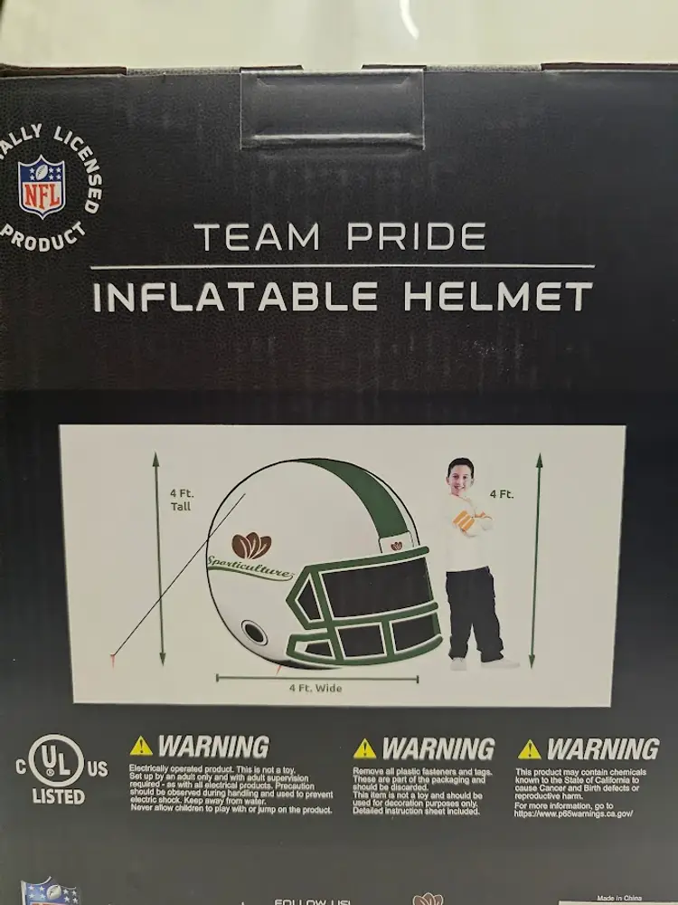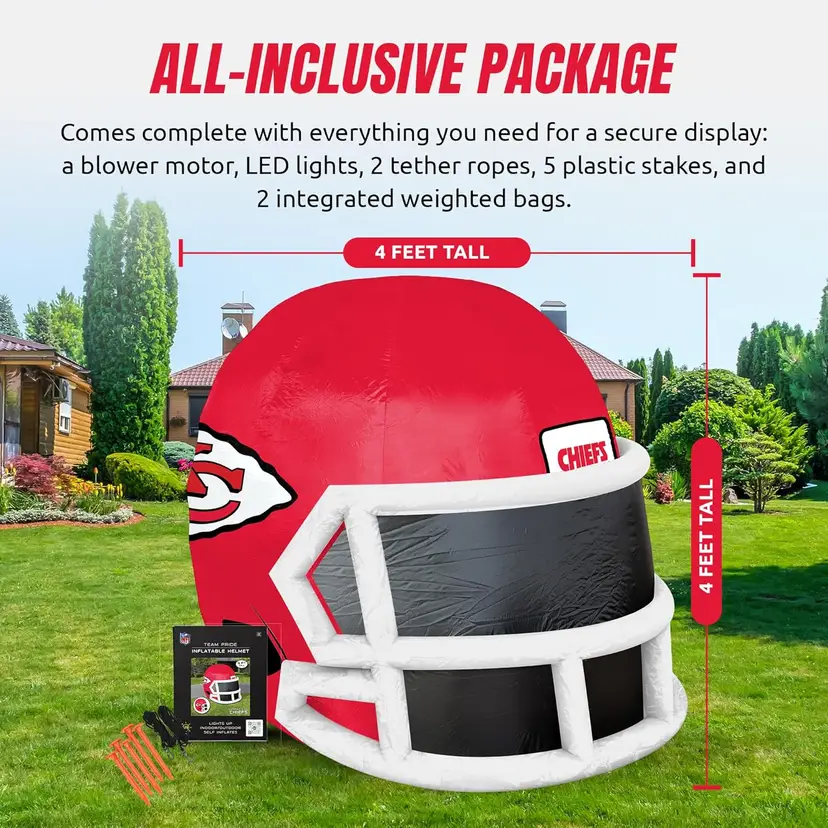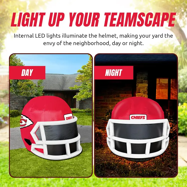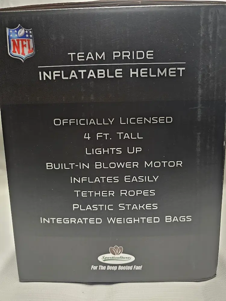 Show your team pride in a BIG way with this officially licensed NFL inflatable helmet! β Huge 4 ft display β perfect for game days, tailgates, or your front yard β Lights up with 6 bright LEDs for day or night use β Quick setup β built-in blower inflates in seconds β Durable & weather-resistant Oxford nylon β made to last β Lightweight & easy to store β only 3 lbs