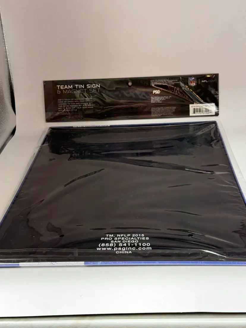 Show your love for the New England Patriots with this officially licensed NFL team tin sign and magnet set. Measuring 16"x12", the sign features the team's iconic logo and is perfect for hanging in your home or office. The magnet is great for adding to your collection or for showing off your team spirit on your refrigerator or any magnetic surface.