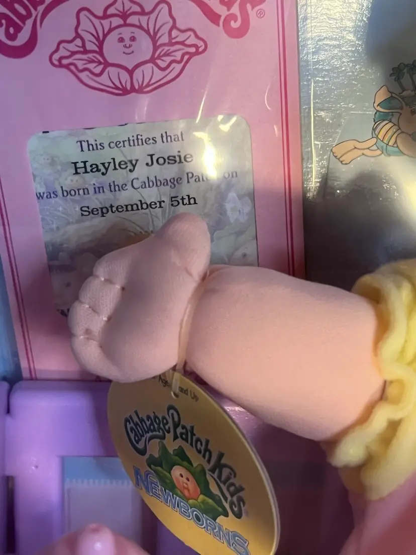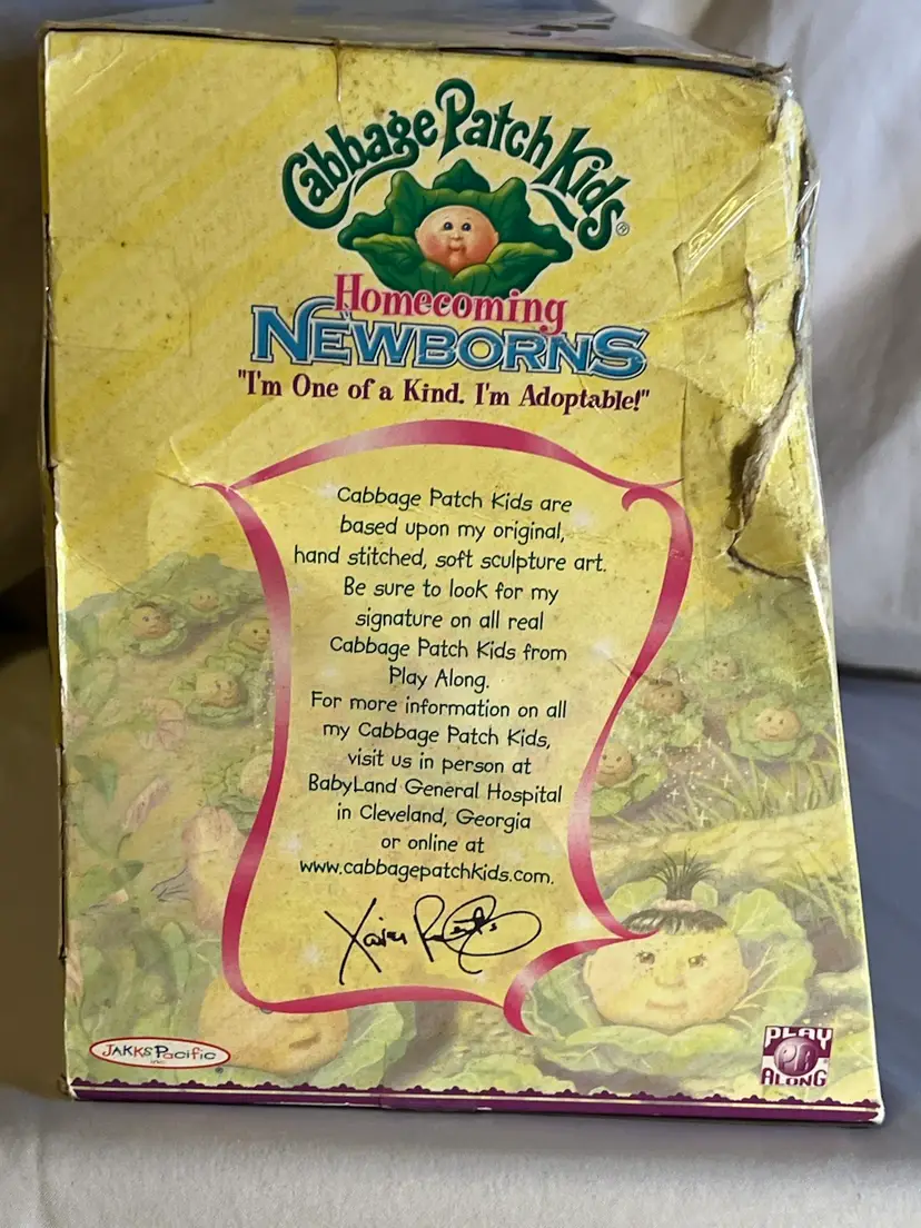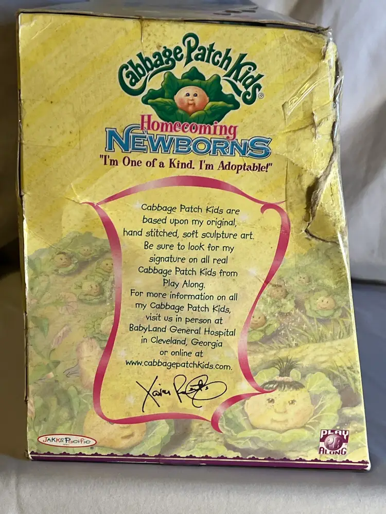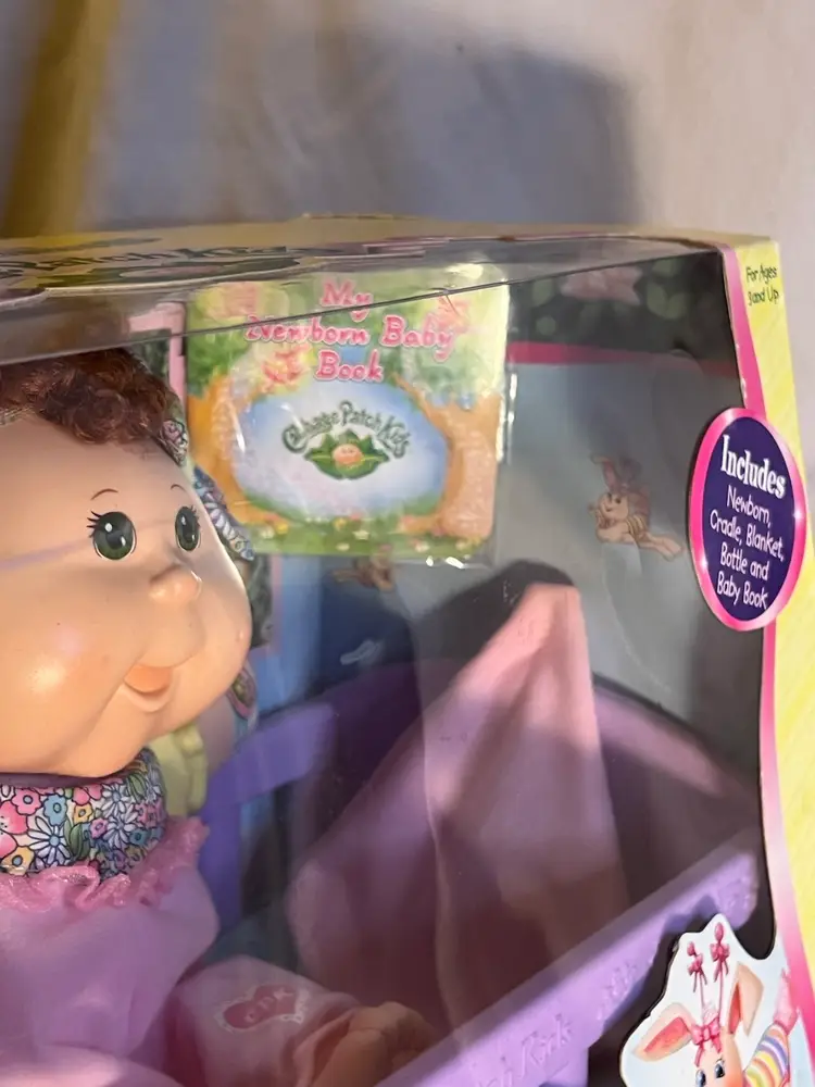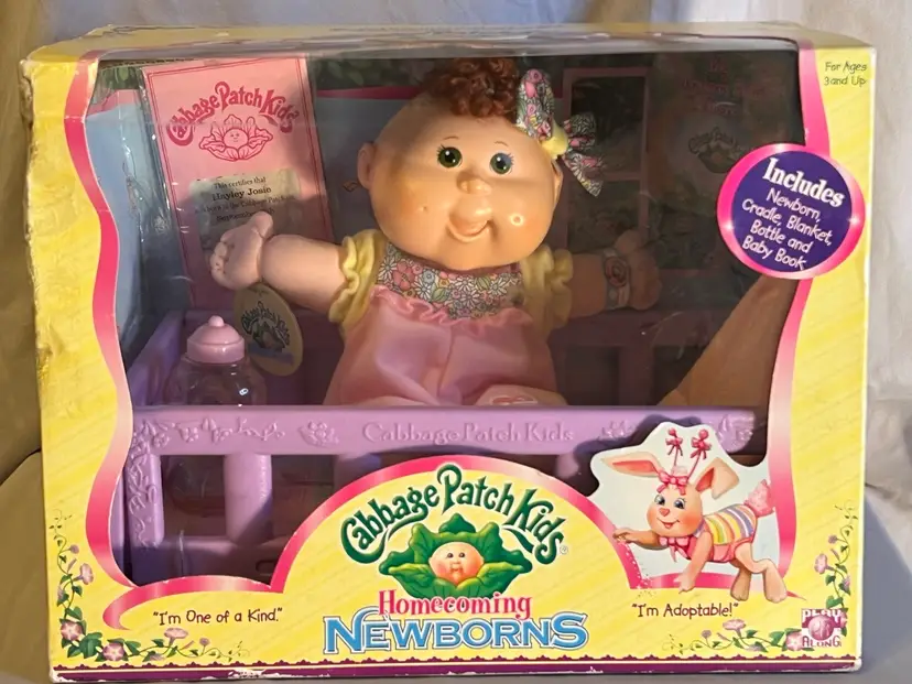 Haley Josie is in her original box with all of her toys and bedding. She comes with her cradle, blanket, bottle and baby book. However the box was damaged in storage. The left hand side got creased and ripped but everything inside the box is perfectly fine.