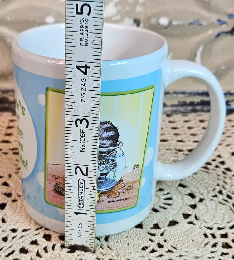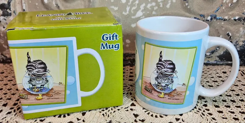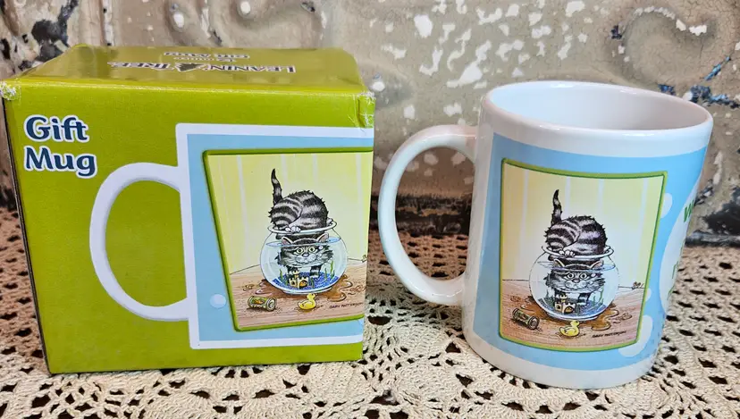 NIB Leanin' Tree Gift Mug Cartoon Cat in Fishbowl 12oz