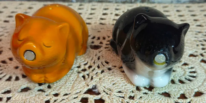 NIB Mwah Magnetic Ceramic Salt & Pepper Shakers Cat Theme Tabby Cats