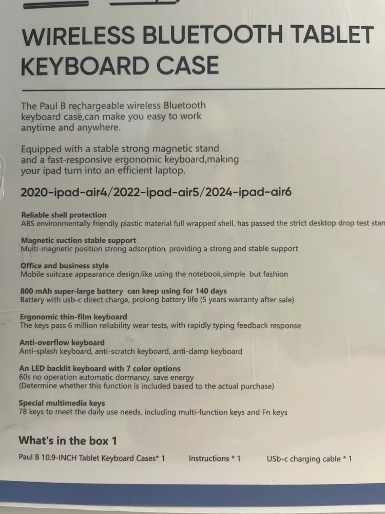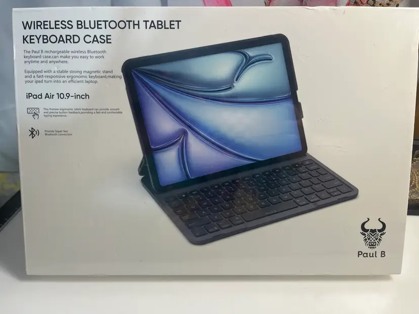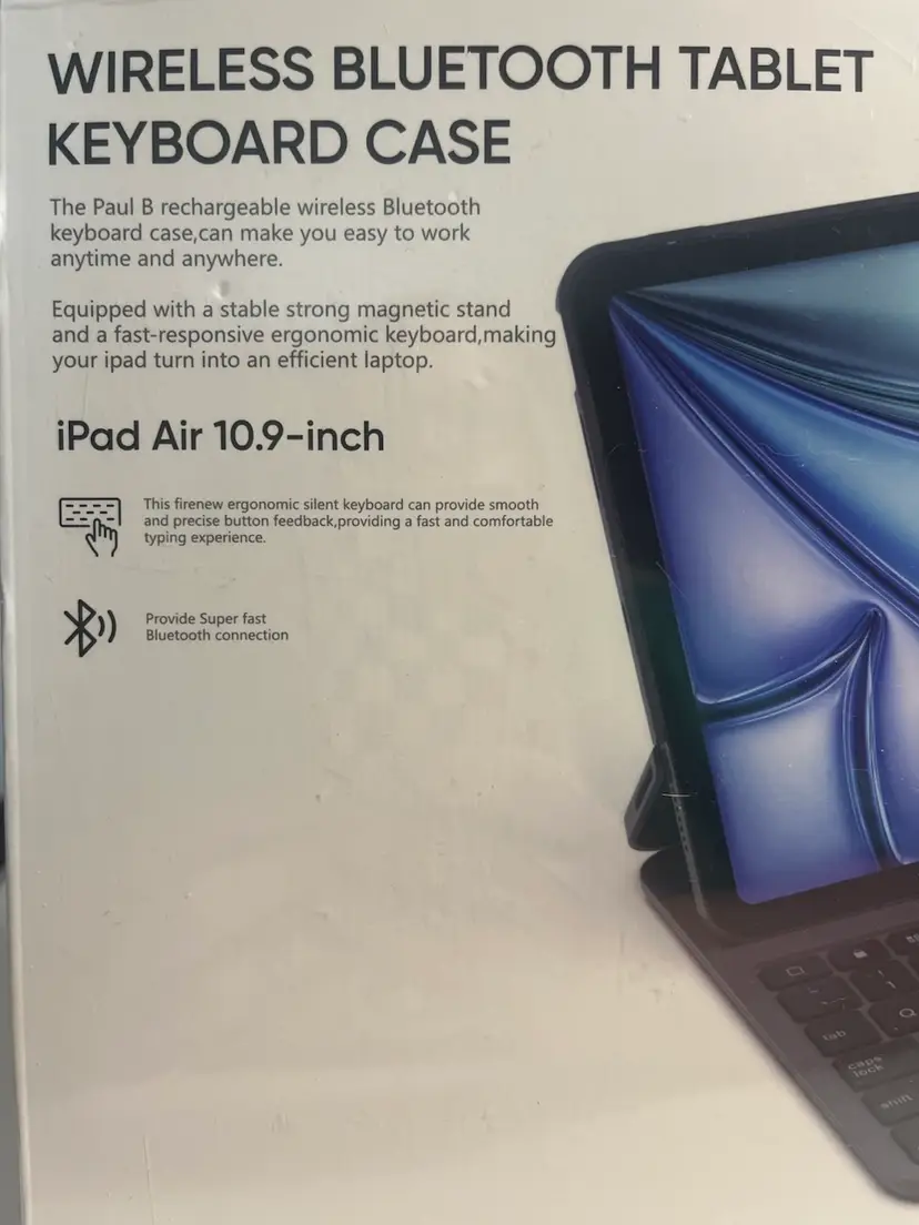 NEW Paul B Wireless Keyboard Case for iPad Air 10.9" The ultimate productivity tool for your iPad Air (4th, 5th, & 6th Gen)! • 140-Day Battery Life – Charge it and forget it! • Ergonomic & Silent – Precise, quiet typing for office or school. • Magnetic Stand – Strong, stable support for "laptop mode." • Color: Galaxy Gray Includes USB-C charging cable. Brand new and ready to ship!