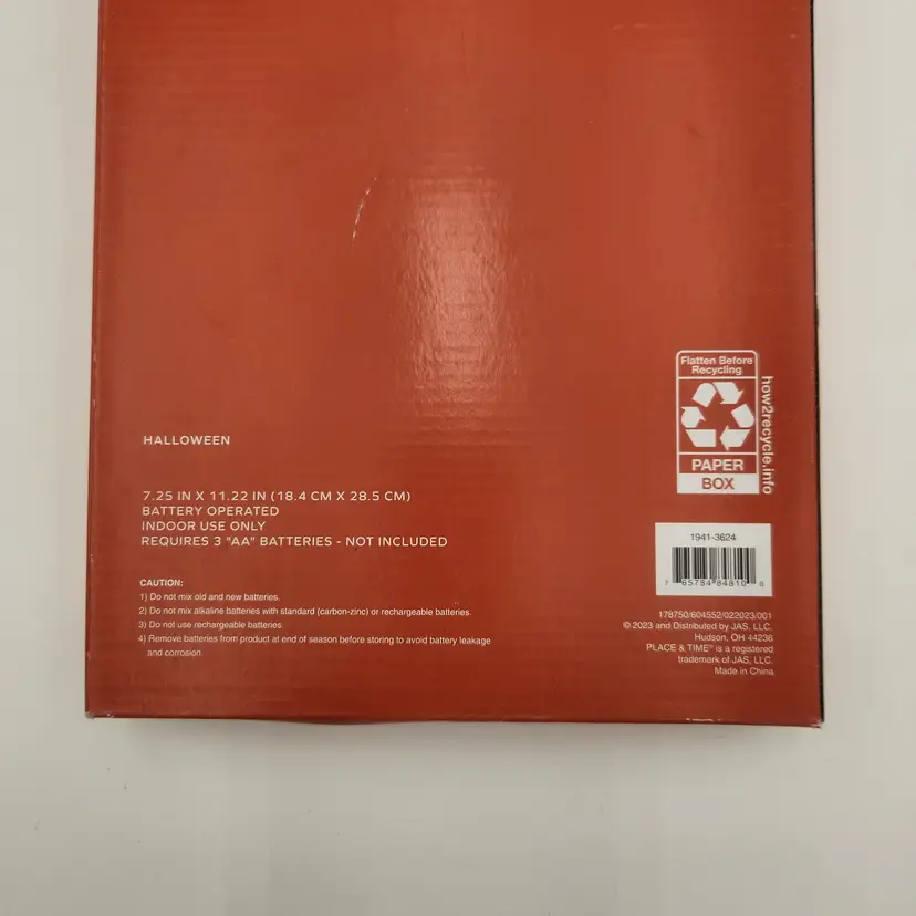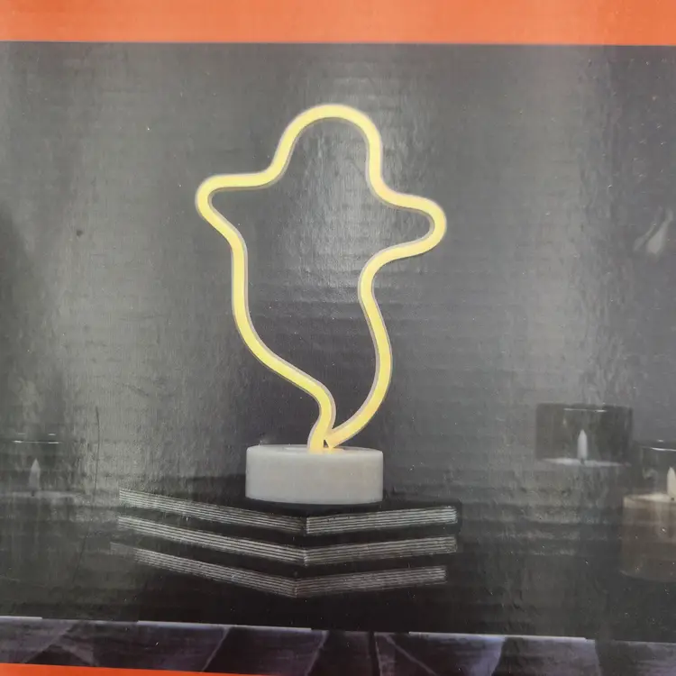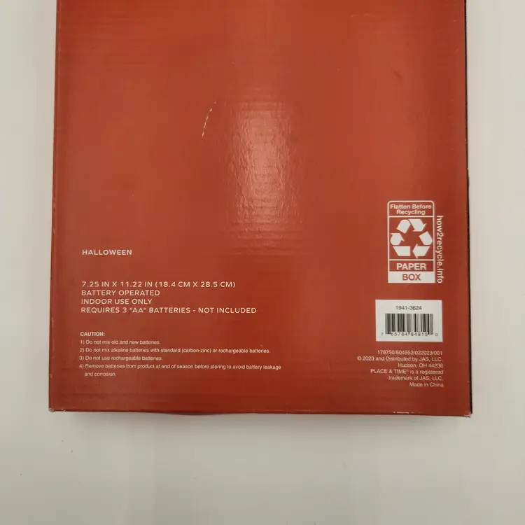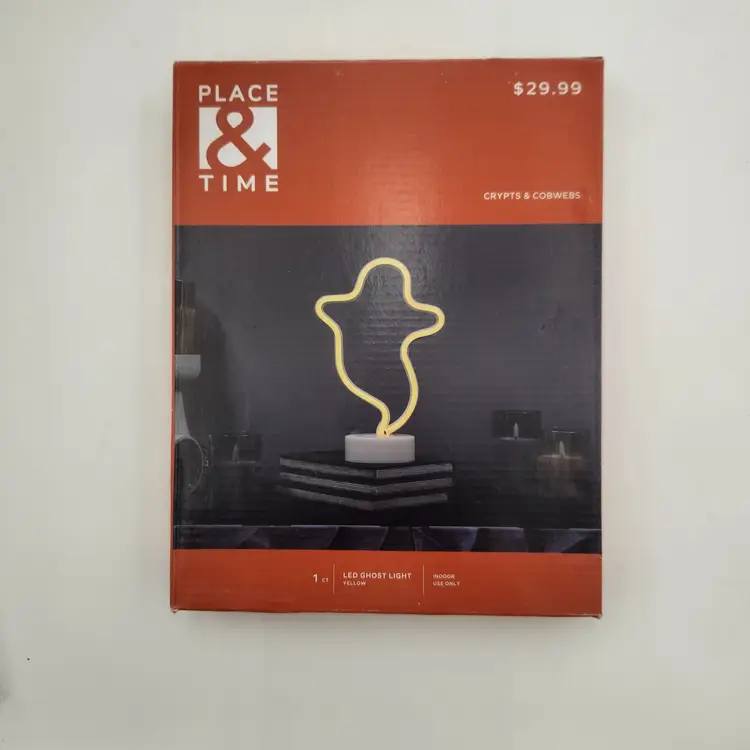 NIB Place & Time Halloween Ghose Light Up figure 7 1/4" x 11" Indoor Use Only A cute little ghost to display on your desk, in the window, or anywhere a little indoor Halloween fun is in order! Needs 3 AAA batteries - included.