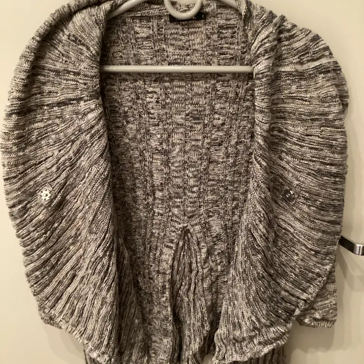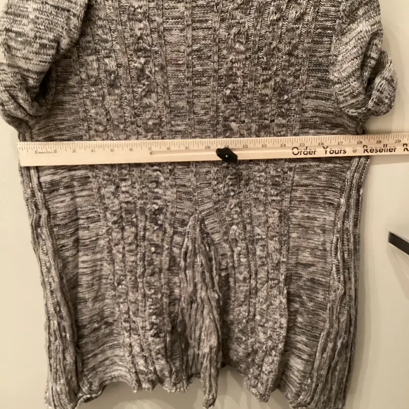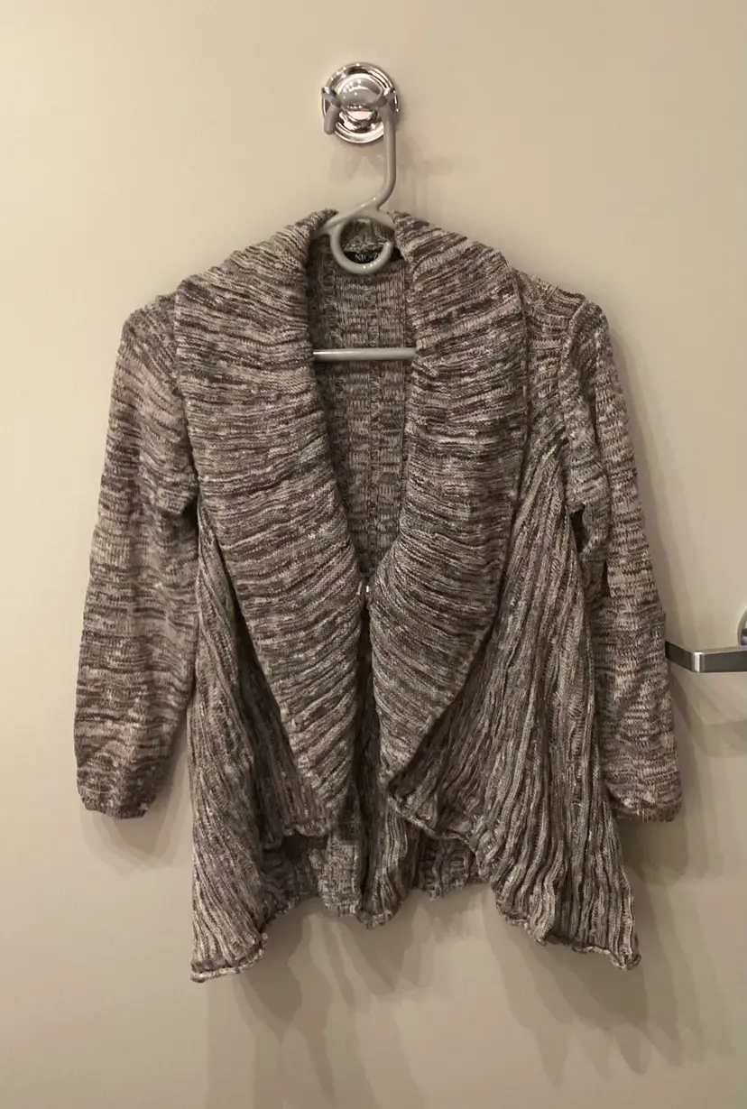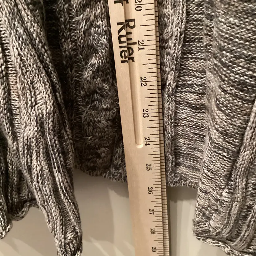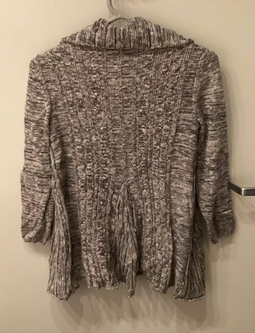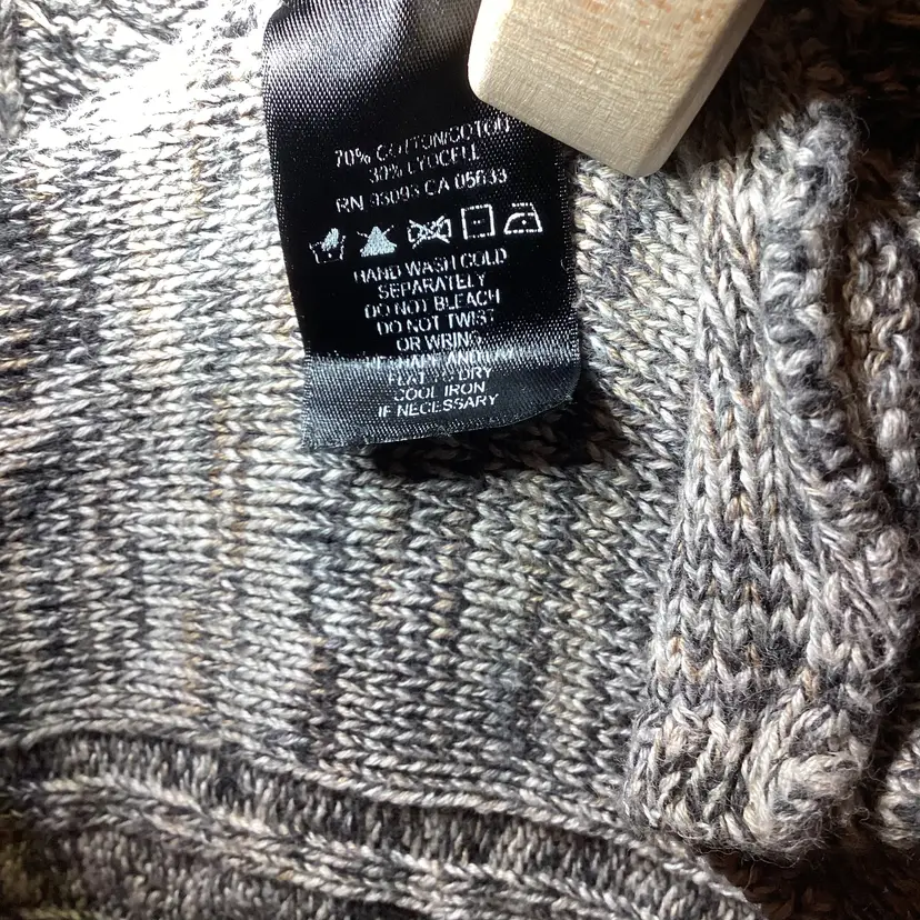 The NIC + ZOE Women's Knit Cardigan in Size Small Petite with a shawl collar is a stylish and versatile piece perfect for casual occasions. The marled pattern in gray and tan colors adds a touch of interest to the cable-knit design. With a snap button closure and long sleeves, this cardigan is both functional and fashionable. Made from a comfortable lyocell and cotton blend fabric, this sweater is easy to care for with a hand wash only requirement. Ideal for winter, fall, or spring, this cardigan from the brand Nic + Zoe is a classic choice for petites