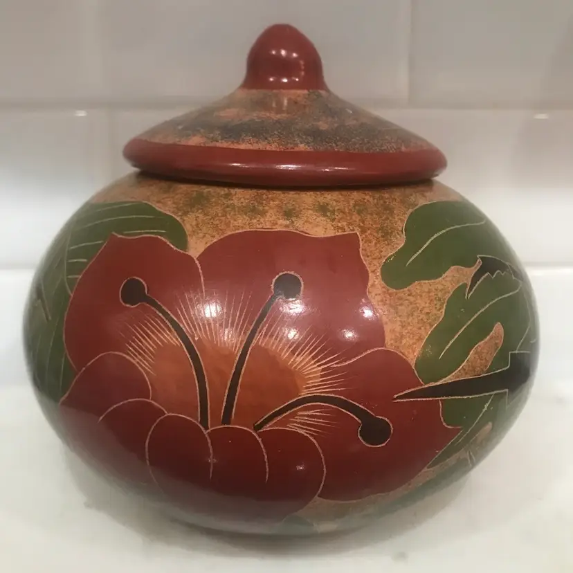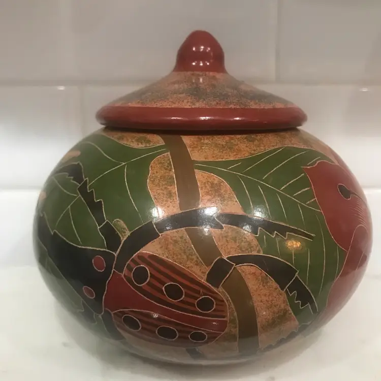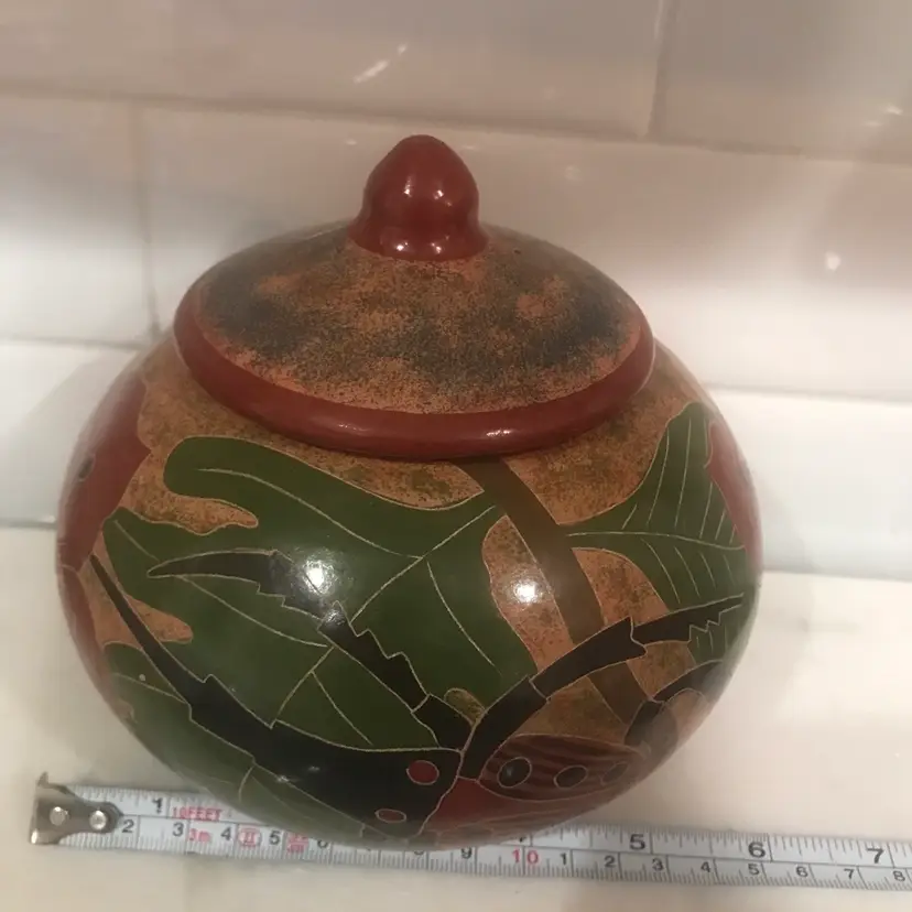 Nicaragua San Juan De Oriente Hand Made Art Pottery 4" Lidded Bowl