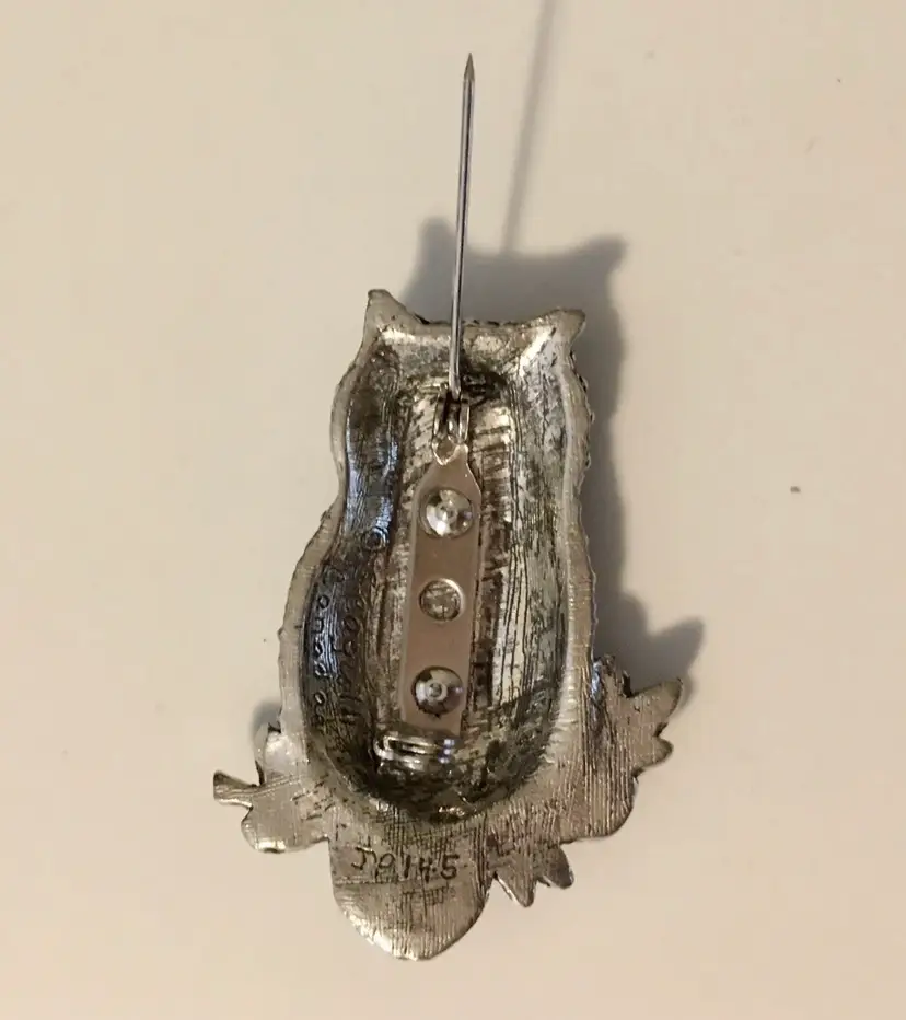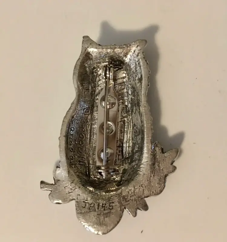 Very cool owl pin. Marked Seagull Canada. Engraved “J P 14-5”.