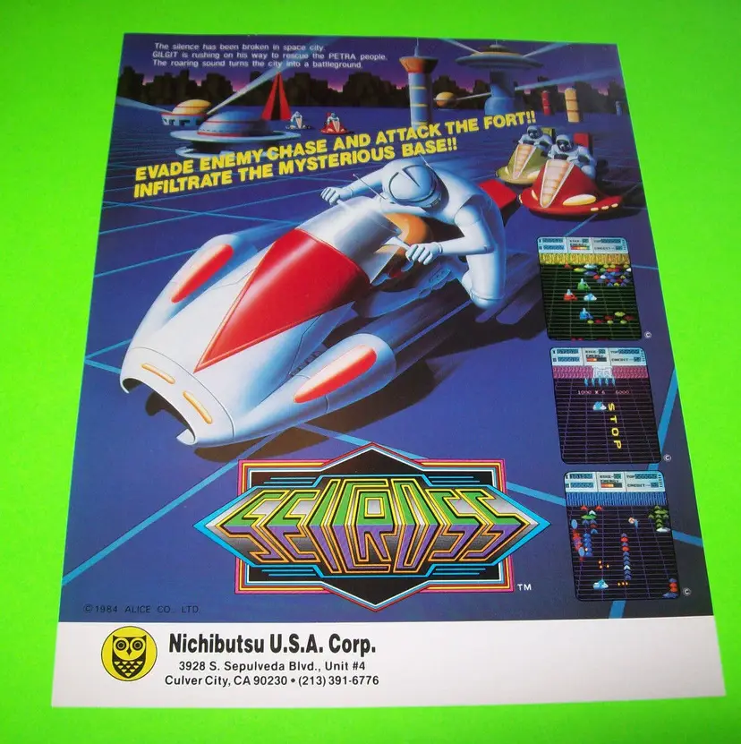 Arcade: Flyer Modified Item: No Country/Region of Manufacture: United States Original/Reproduction: Original Year: 1984 Game Title: Seicross Brand: Nichibutsu Theme: Retro Gaming