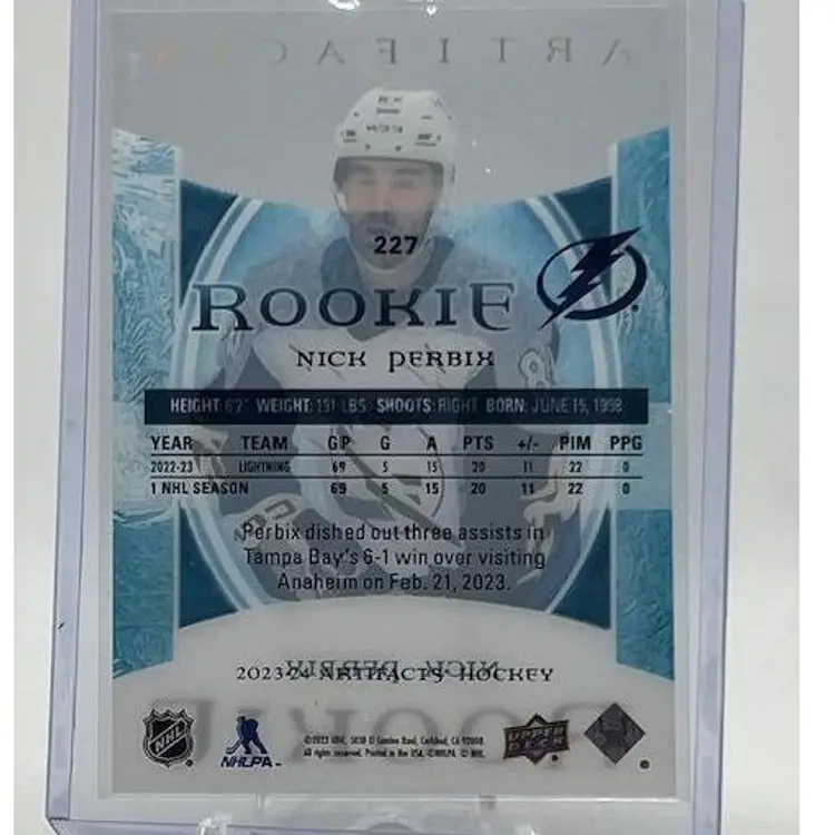 Nick Perbix 2023-2024 Upper Deck Hockey Artifacts Rookie Plexi SP Parallel Tampa Bay Lightning. Shipping is $1 for the first card, +$0.50 for additional cards, and ships PWE within 1-2 days.