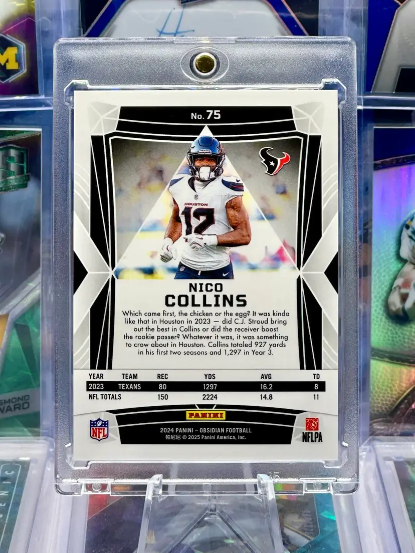 Nico Collins Colins 2024 Panini Obsidian Asia International Black Silver Pulsar Prizm Holo Refractor Parallel Insert SP Short Print University of Michigan Wolverines Houston Texans Rare NCAA NFL Football Card