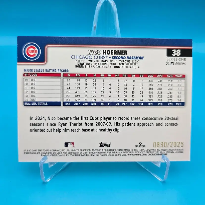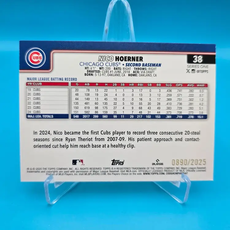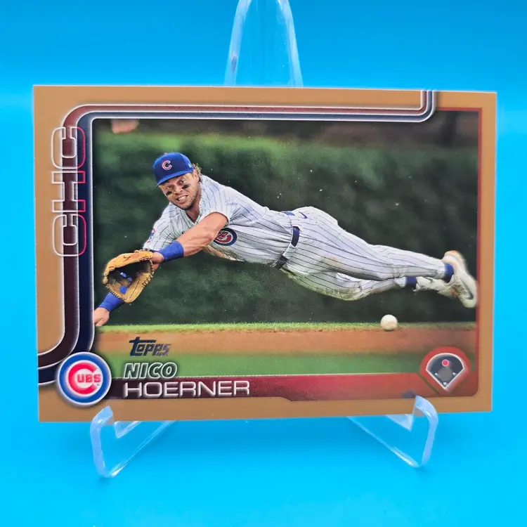 Nico Hoerner gold border parallel /2025. NM or better condition. Shipped PWE.